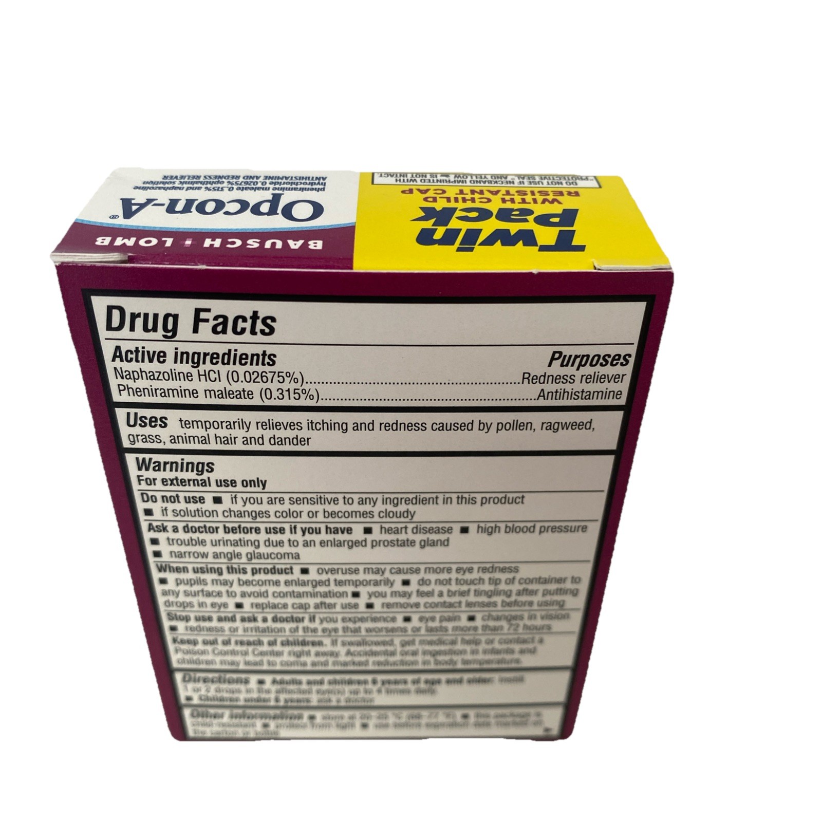 Bausch Lomb Opcon-A Eye Allergy Relief Itching Redness Eye Drops Twin Pack