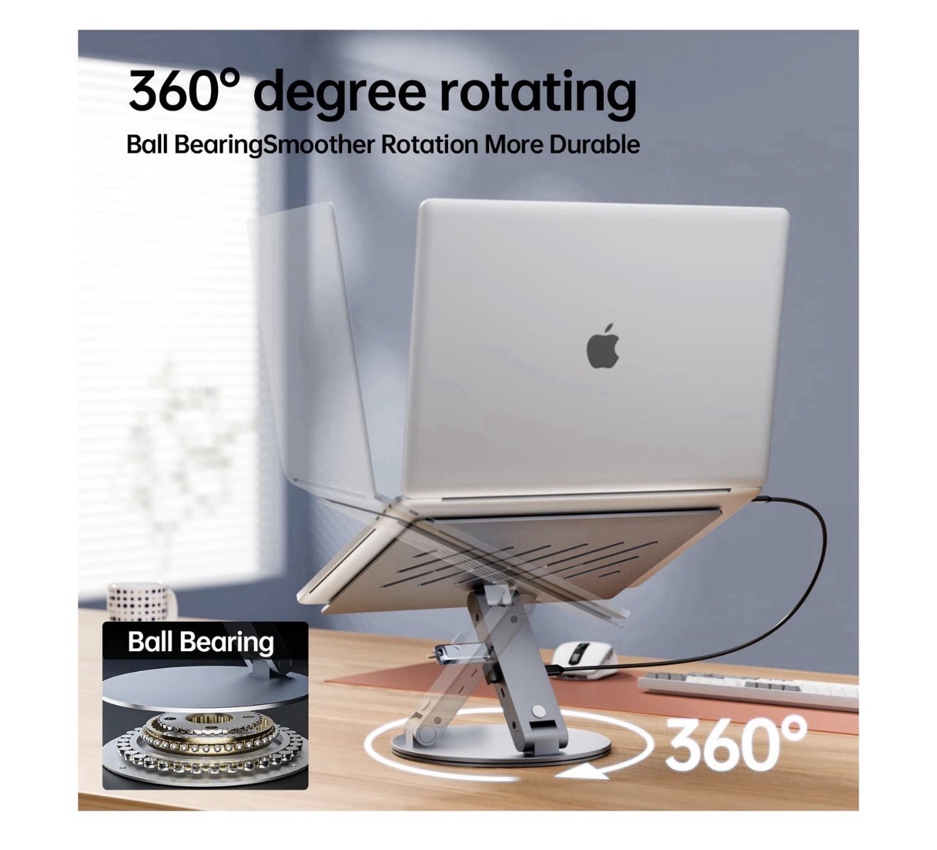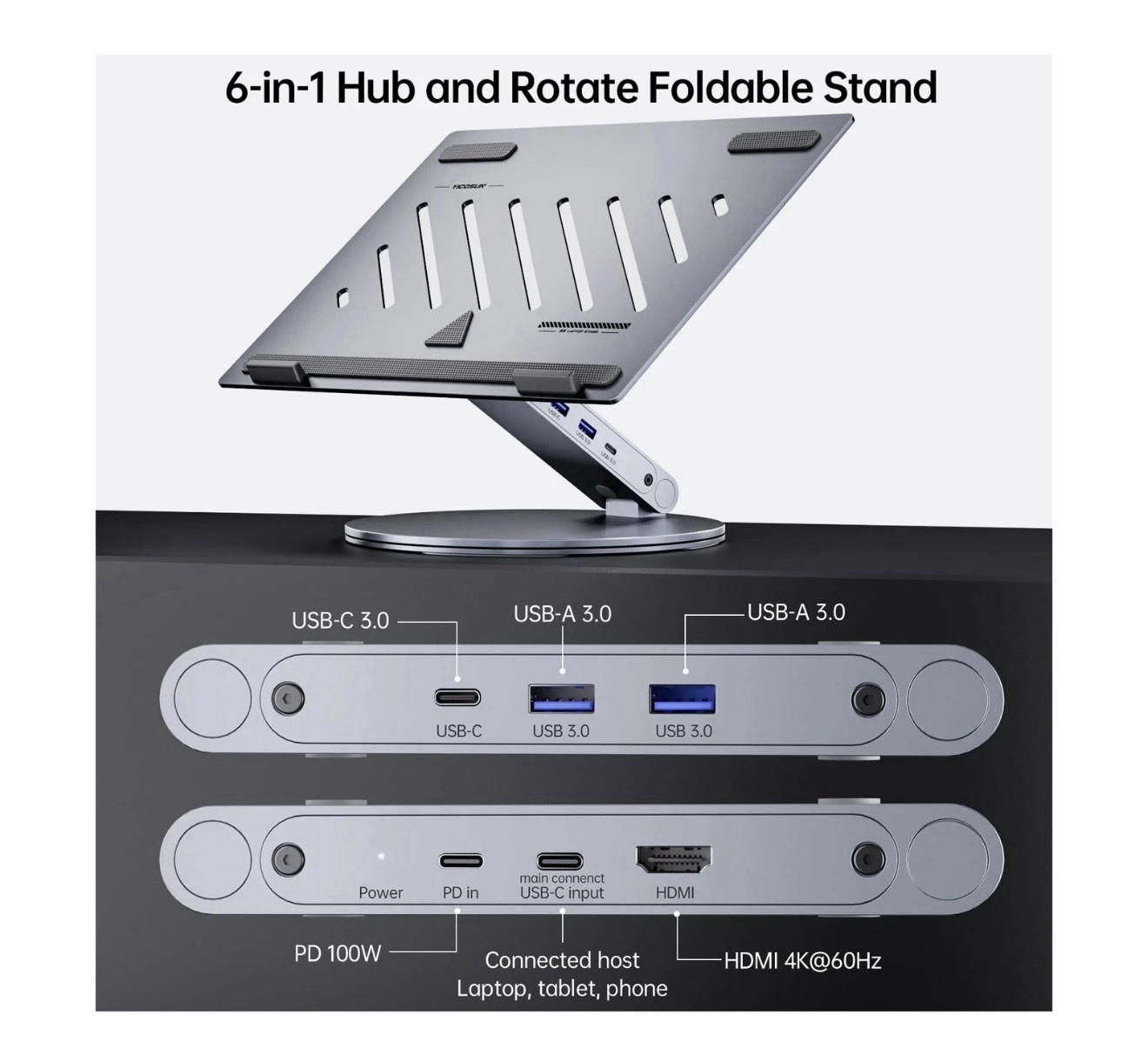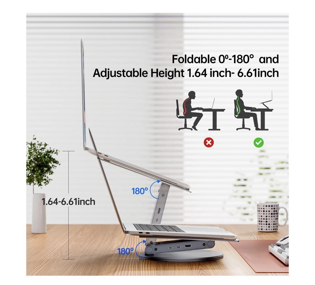 Adjustable Laptop Stand with 6-in-1 USB C Docking Station, 360 176; Rotatable,