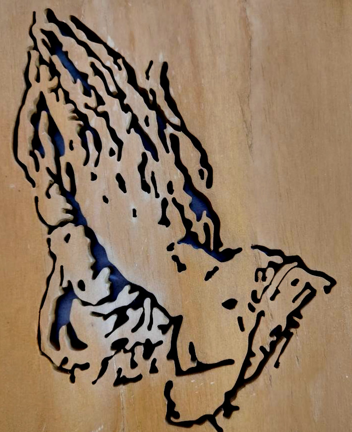 HAND CRAFTED LASER CUT PRAYING HANDS WOOD WALL PLAQUE Vintage 10.5 x 7.5