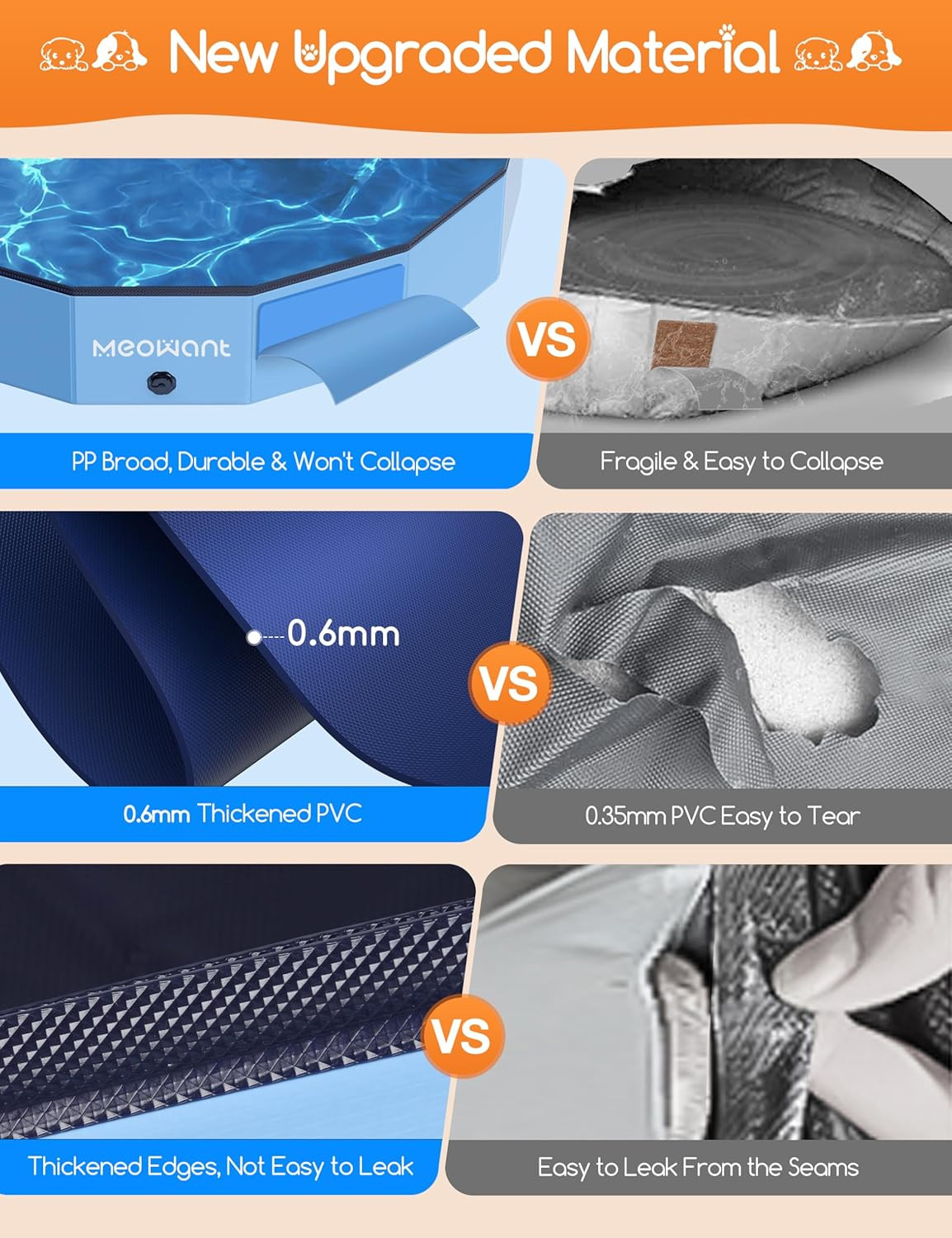 Foldable Dog Pools for Large Dogs, Hard Plastic Kiddie Pool Dog Swimming, Collap