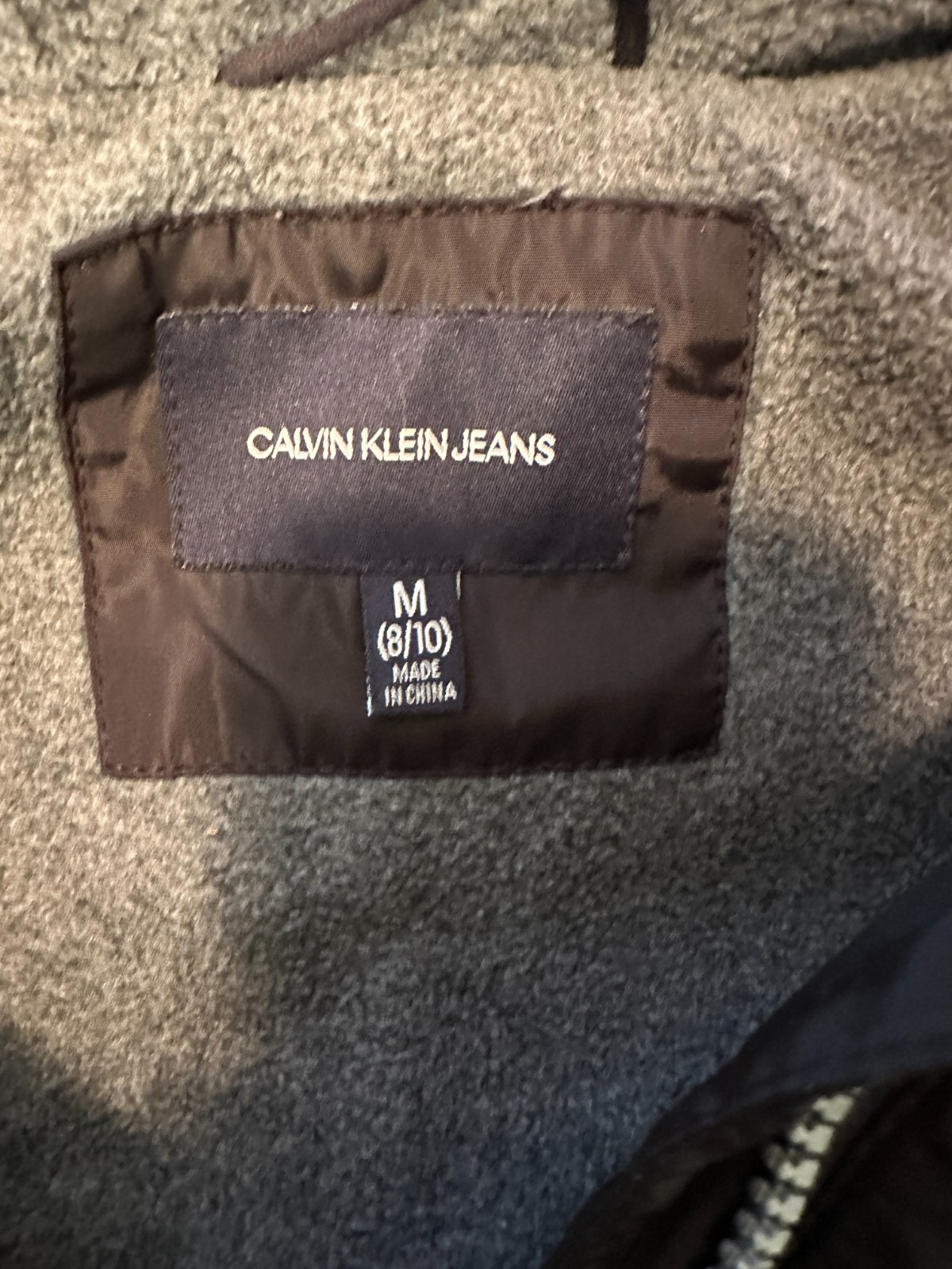как выглядит Calvin Klein Girls Puffer Long Coat Jacket Black Faux Fur Hood Youth M 8/10 фото