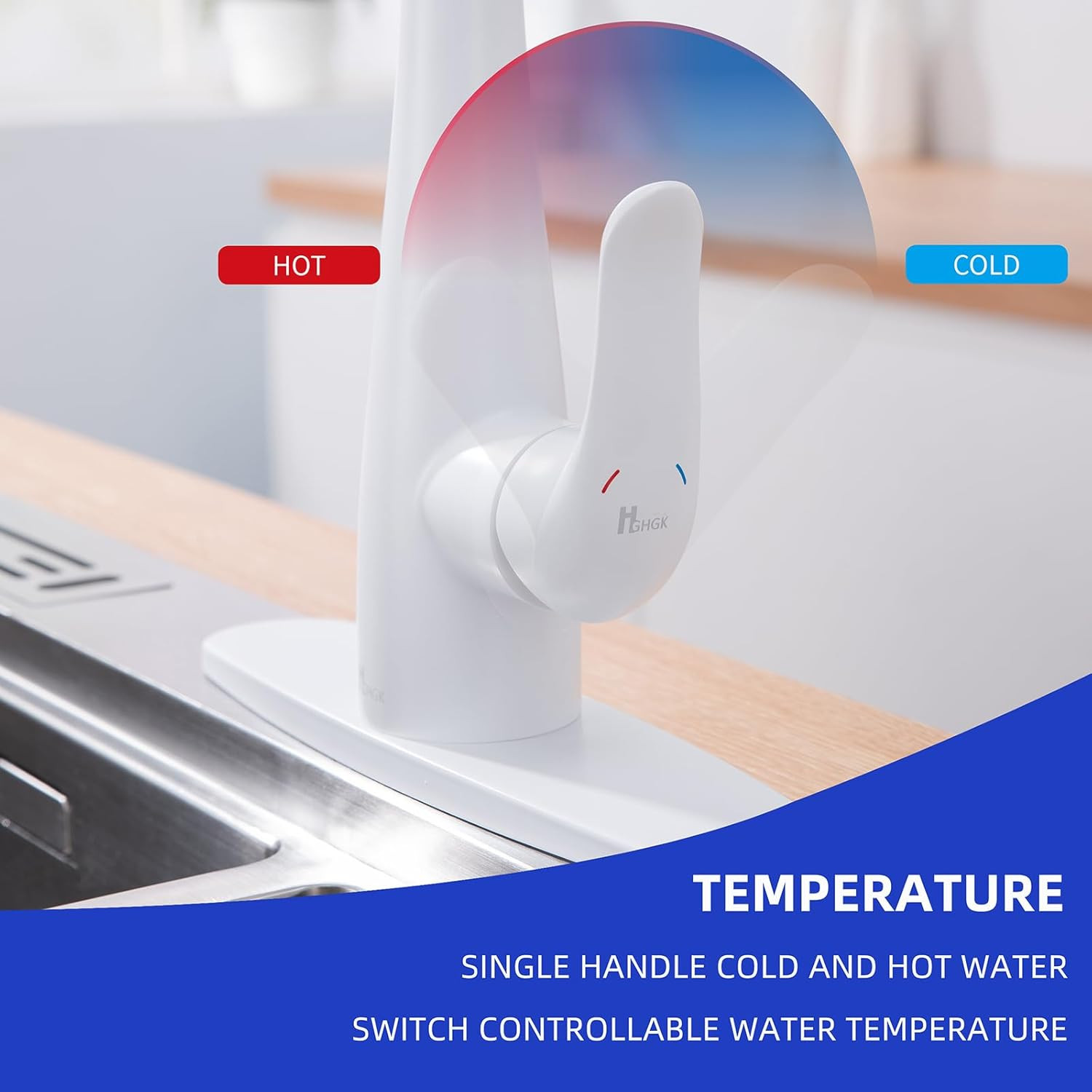 White Stainless Steel Kitchen Faucet with Pull Down Sprayer Soap Dispenser