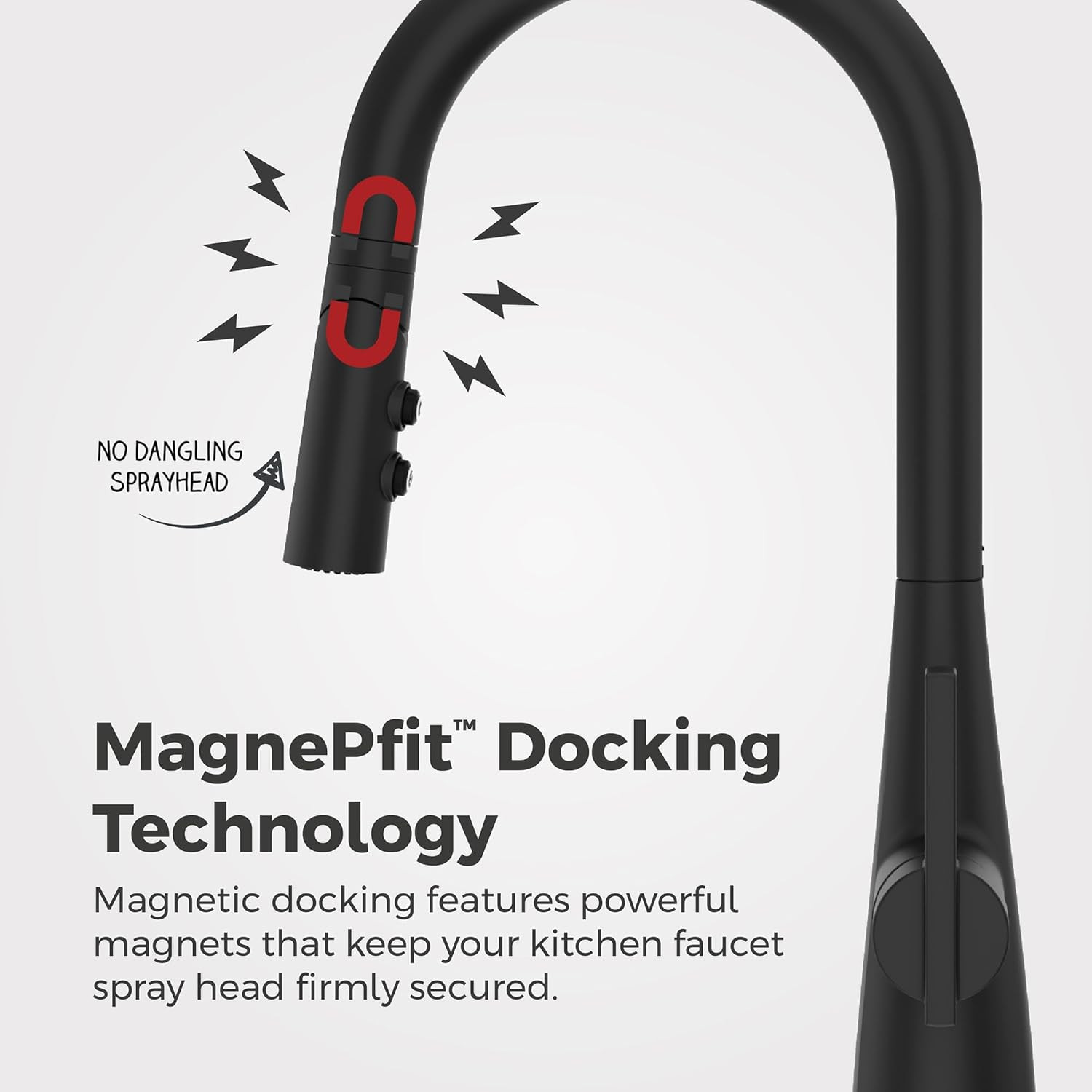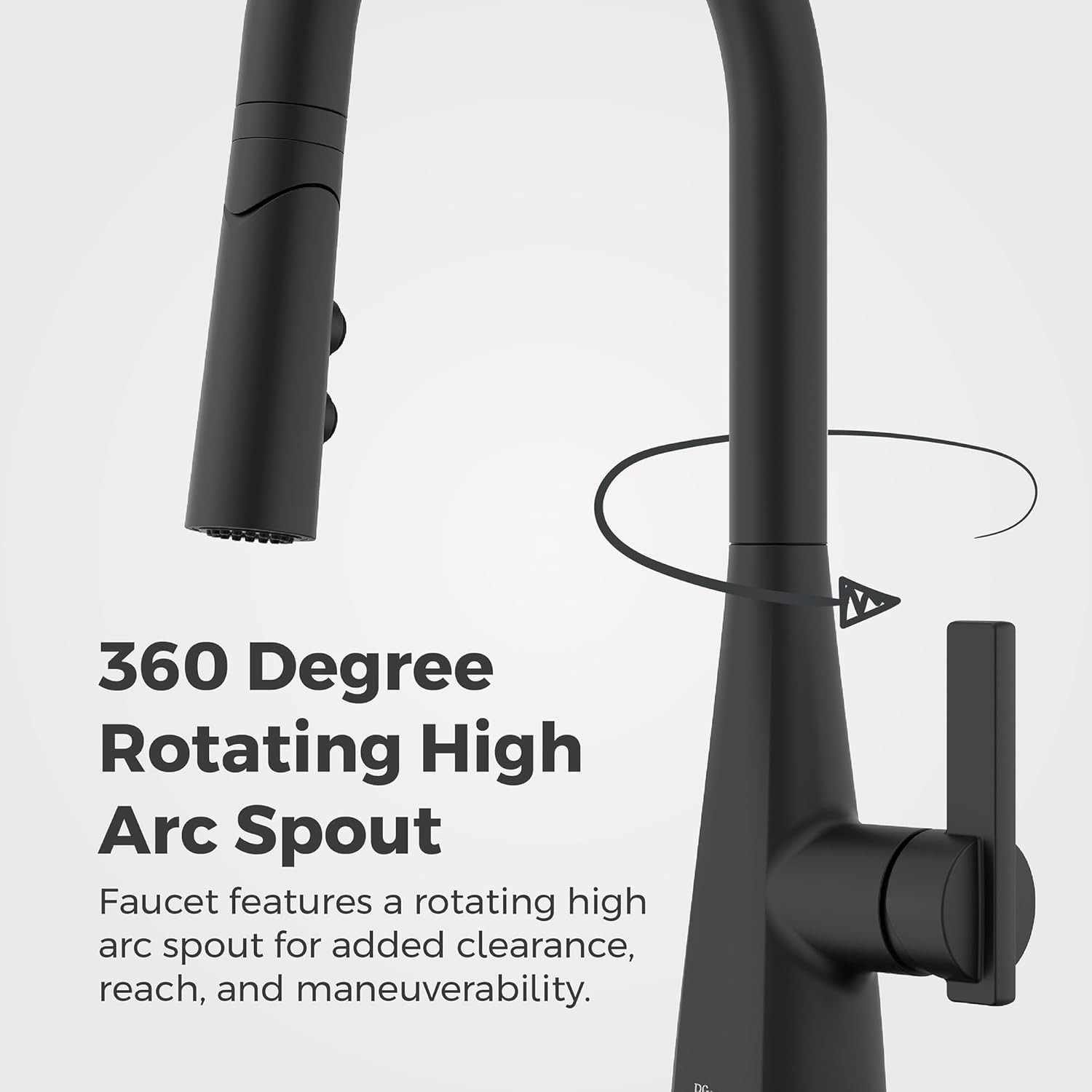 Matte Black Exemplar Pull Down Kitchen Faucet - NSF Certified High Arc Design