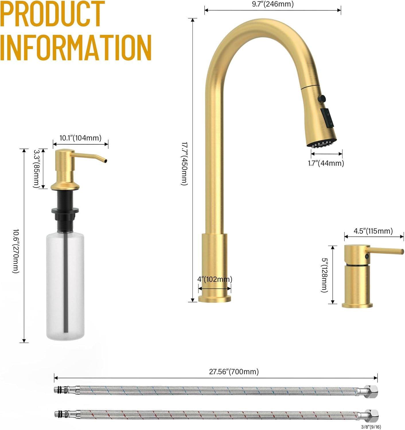 Model Name: Brushed Gold Kitchen Faucet with Soap Dispenser and Side Handle