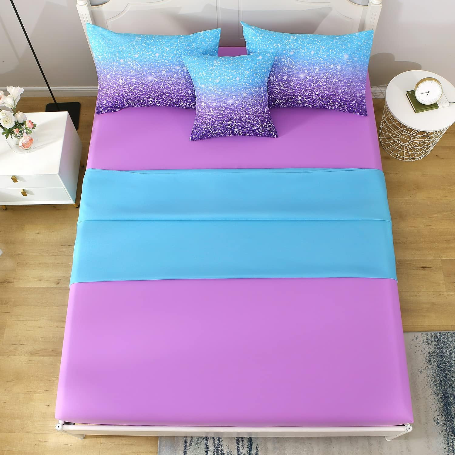 6Pcs Glitter Comforter Set with Sheets for Teens Girls Kids, Colorful Gradient G