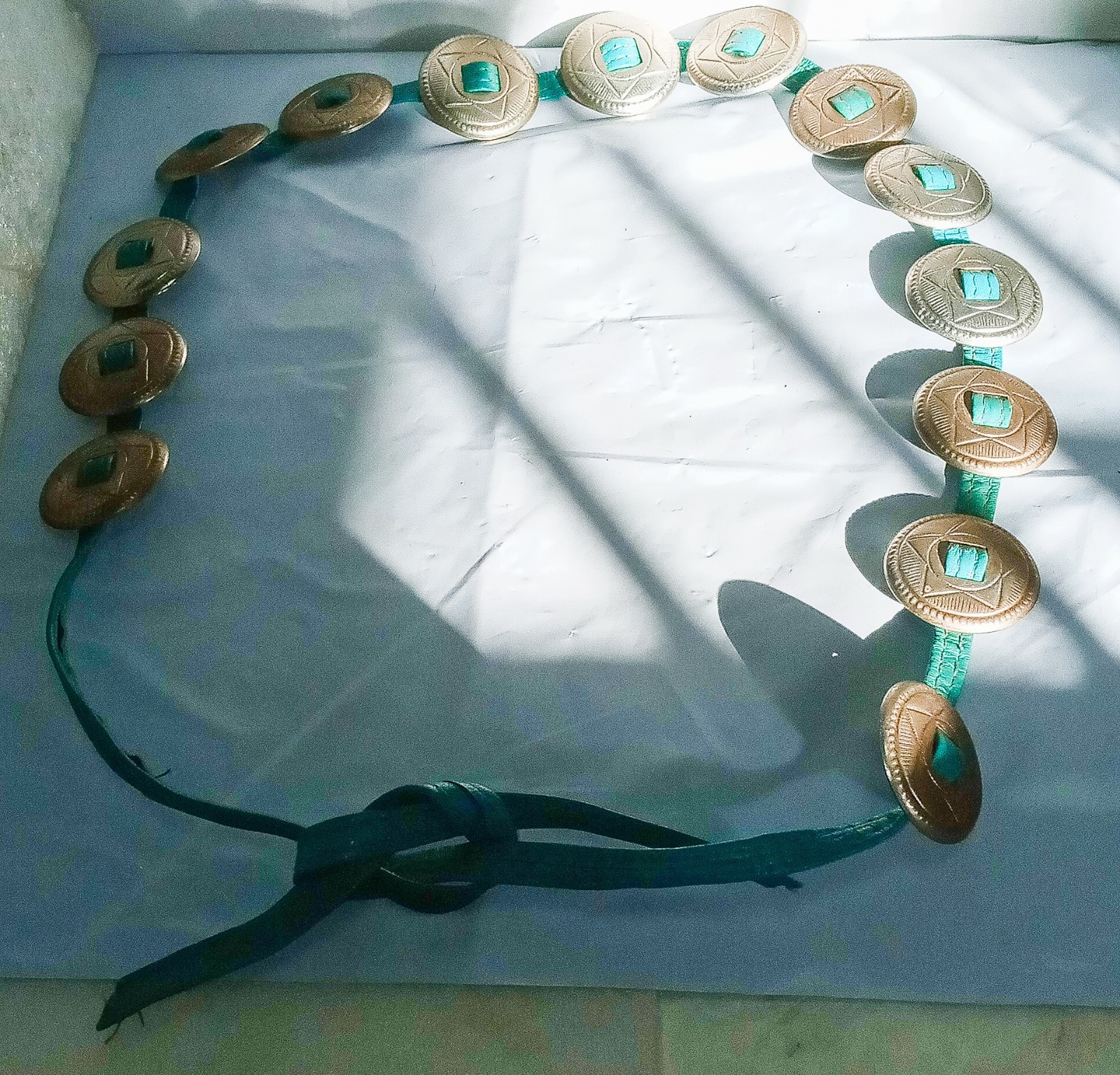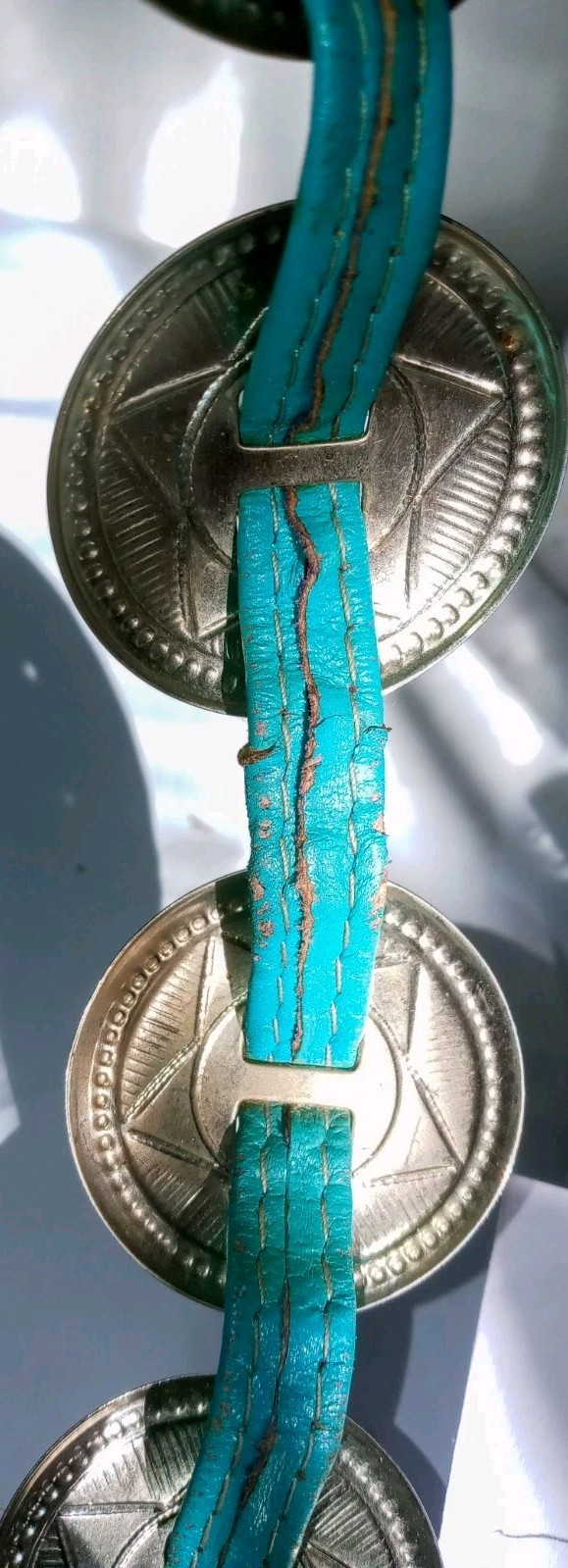 как выглядит Vtg Turquoise Leather Concho Tie Belt Western Silver Tone Boho Festival 34 фото