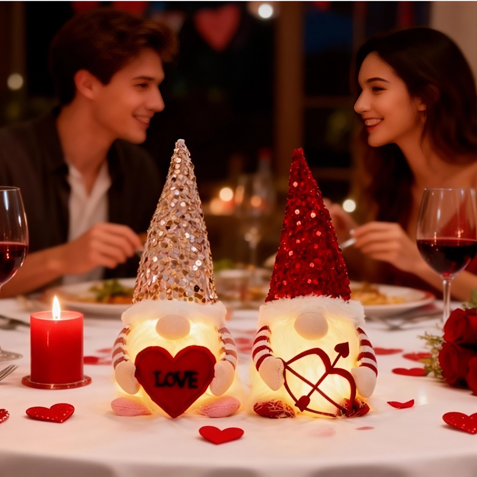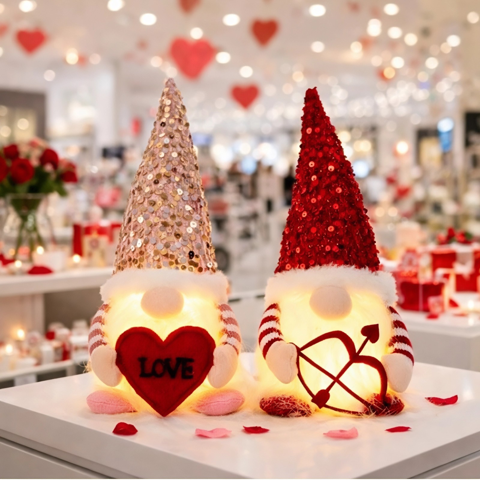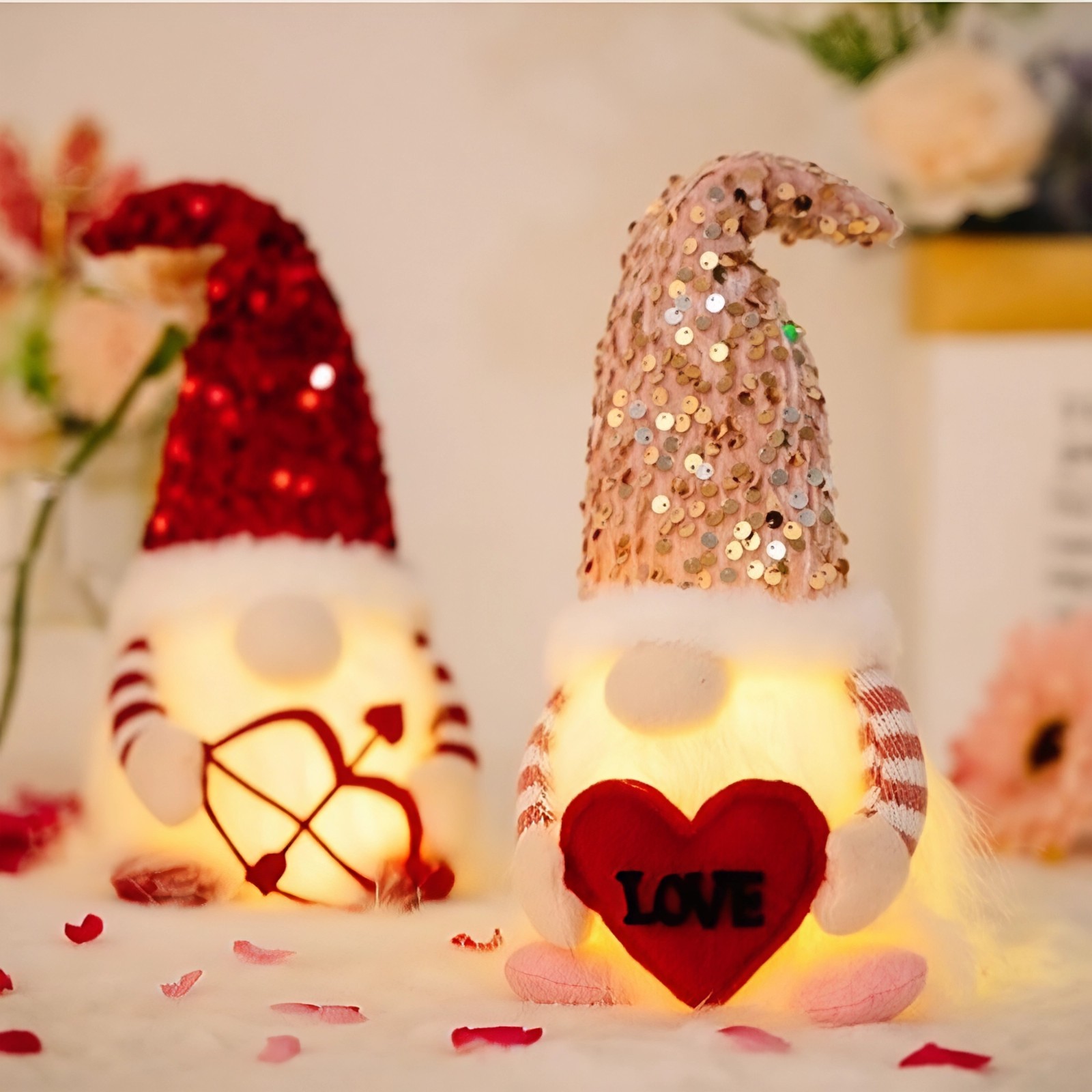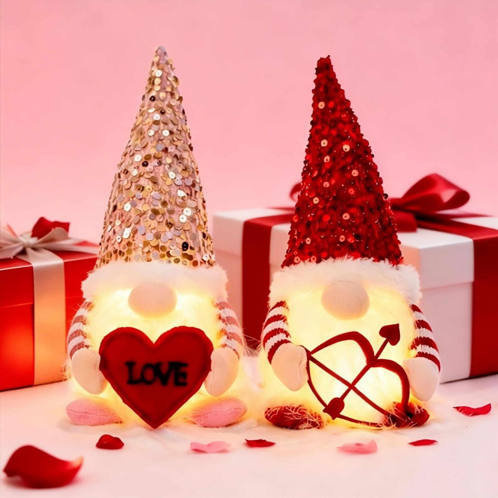 Valentine's Day Lighted Gnome Decor 2 Pack Luminous Sequined Heart Cupid Gift.