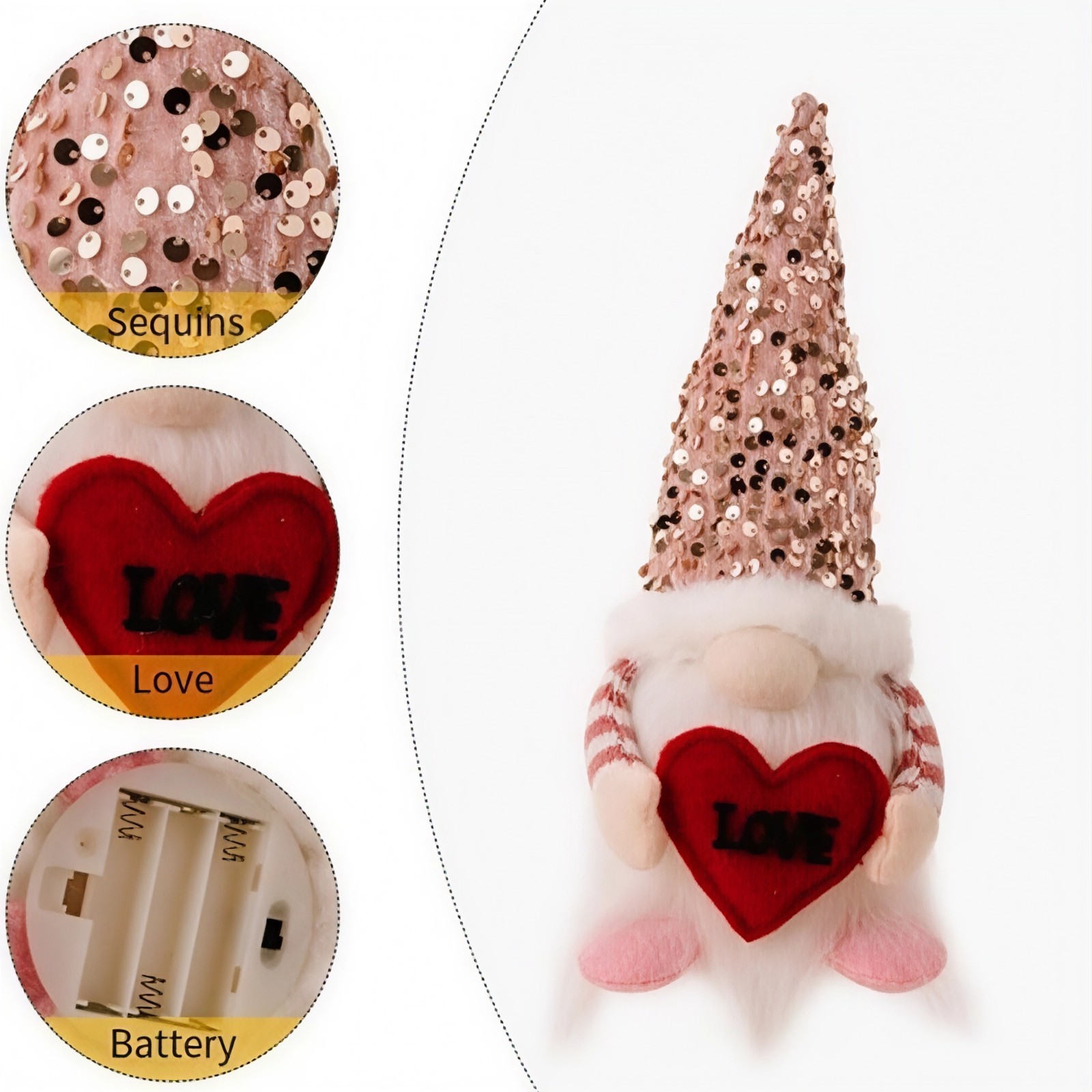 как выглядит Valentines Day Lighted Gnome Decor 2 Pack Luminous Sequined Heart Cupid Gift. фото