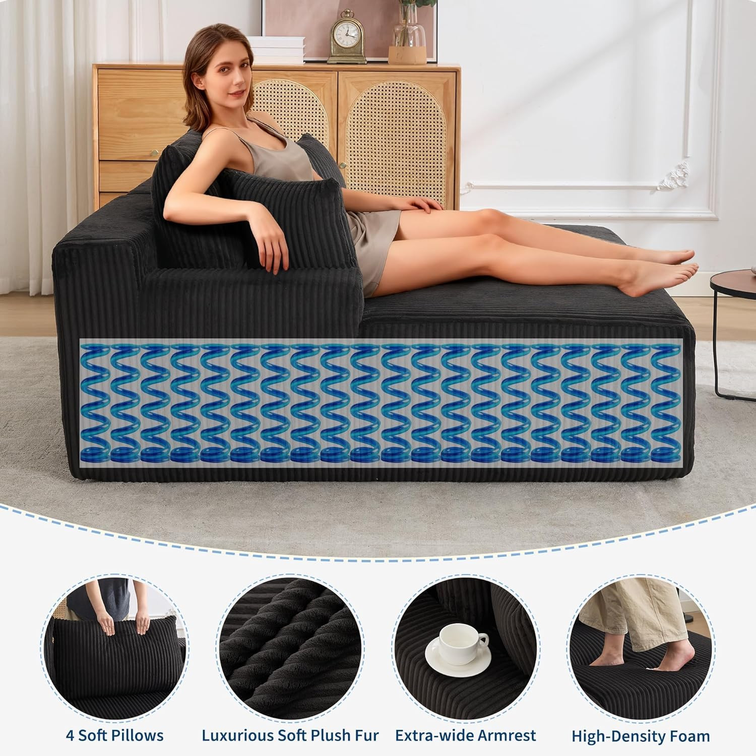 Oversized Corduroy Sleeper Sofa Bed - 79'' Deep Seat, 4 Pillows Included