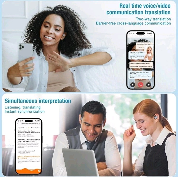 Open Ear Headphones Wireless Bluetooth, AI Translation Earbuds Real Time