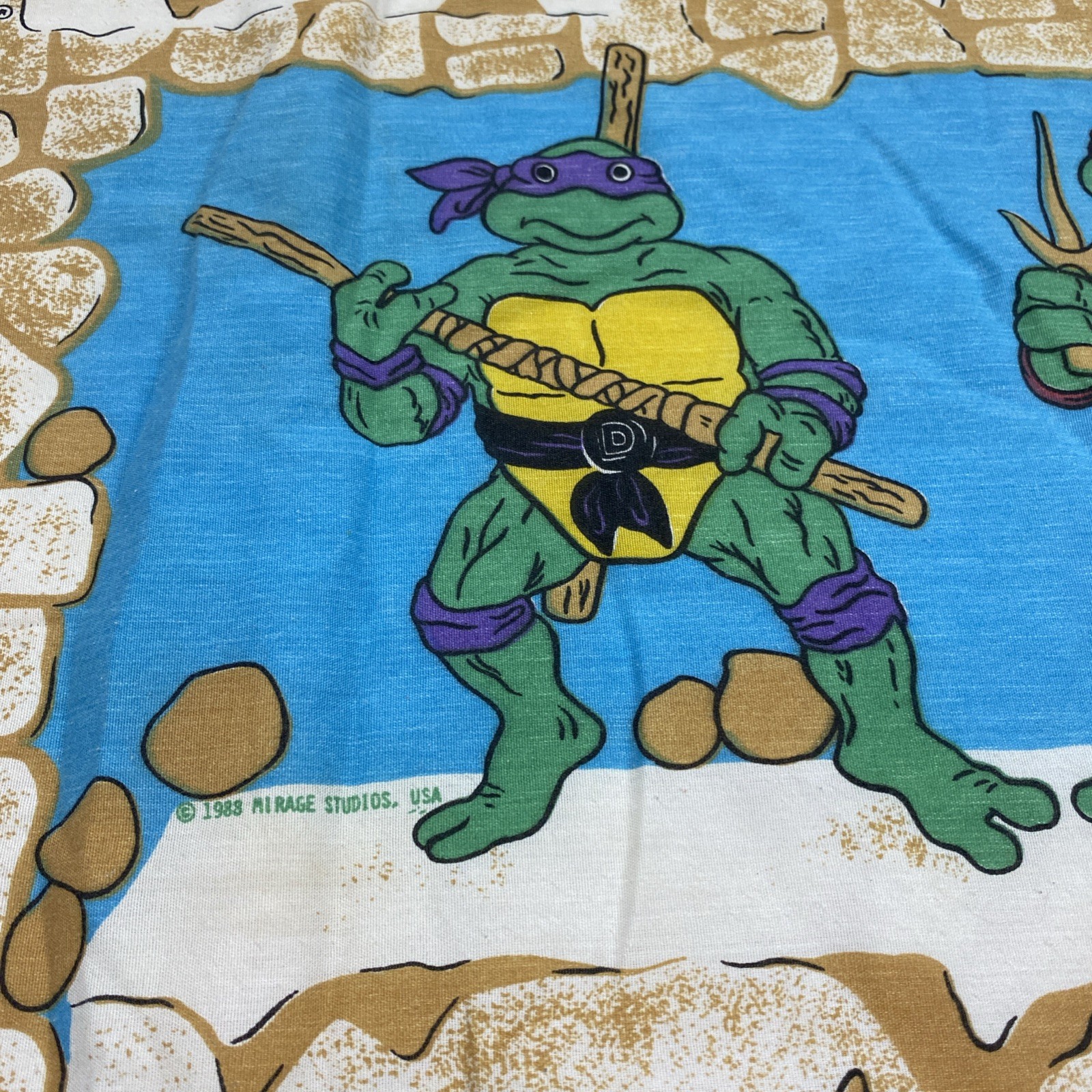 VTG 1988 MIRAGE TEENAGE MUTANT NINJA TURTLES QUILTED COMFORTER BLANKET 86X60 EUC
