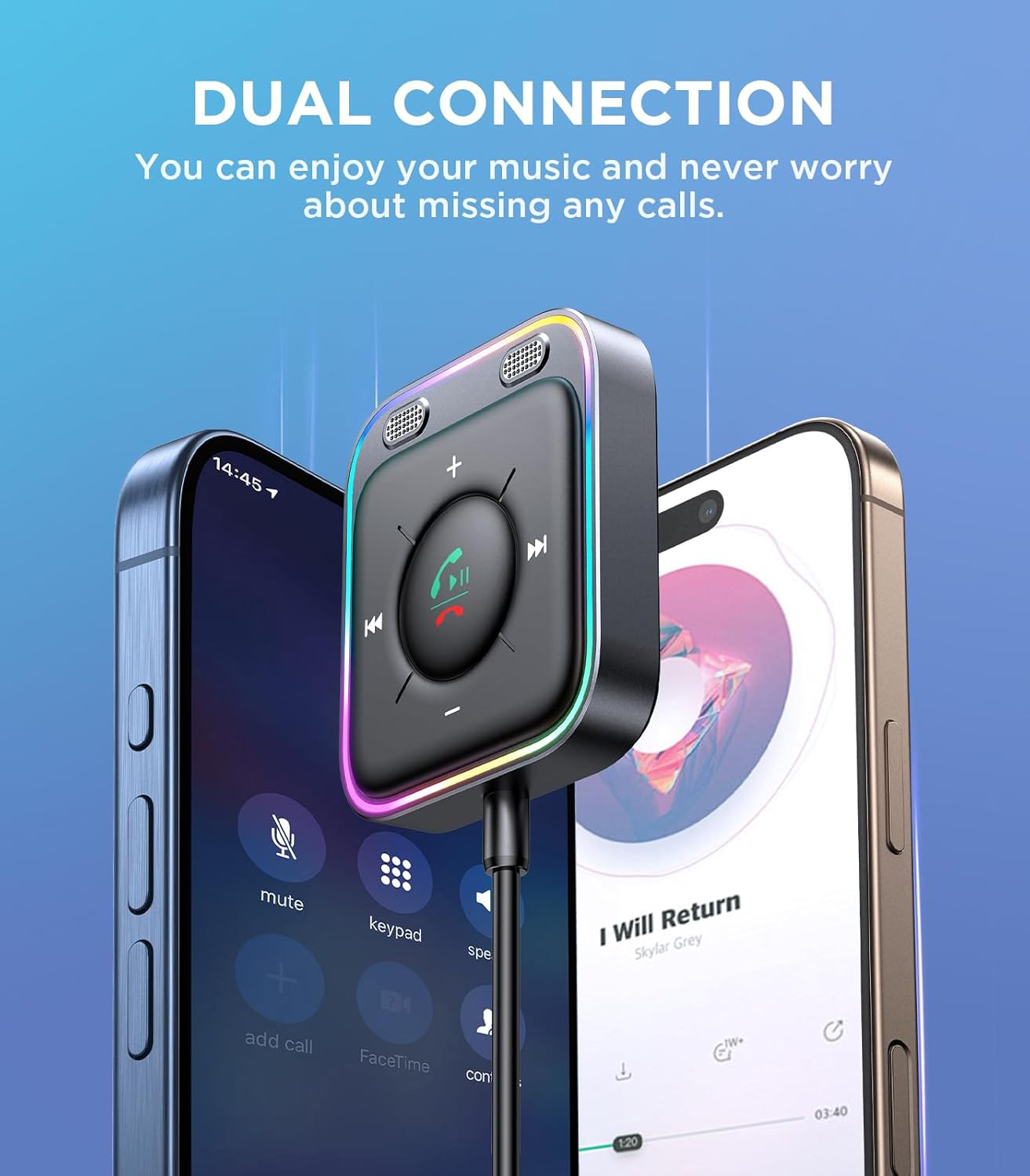 JOYROOM Bluetooth 5.4 AUX Car Adapter 2026 Upgrade Stronger Dual Mics Noise C