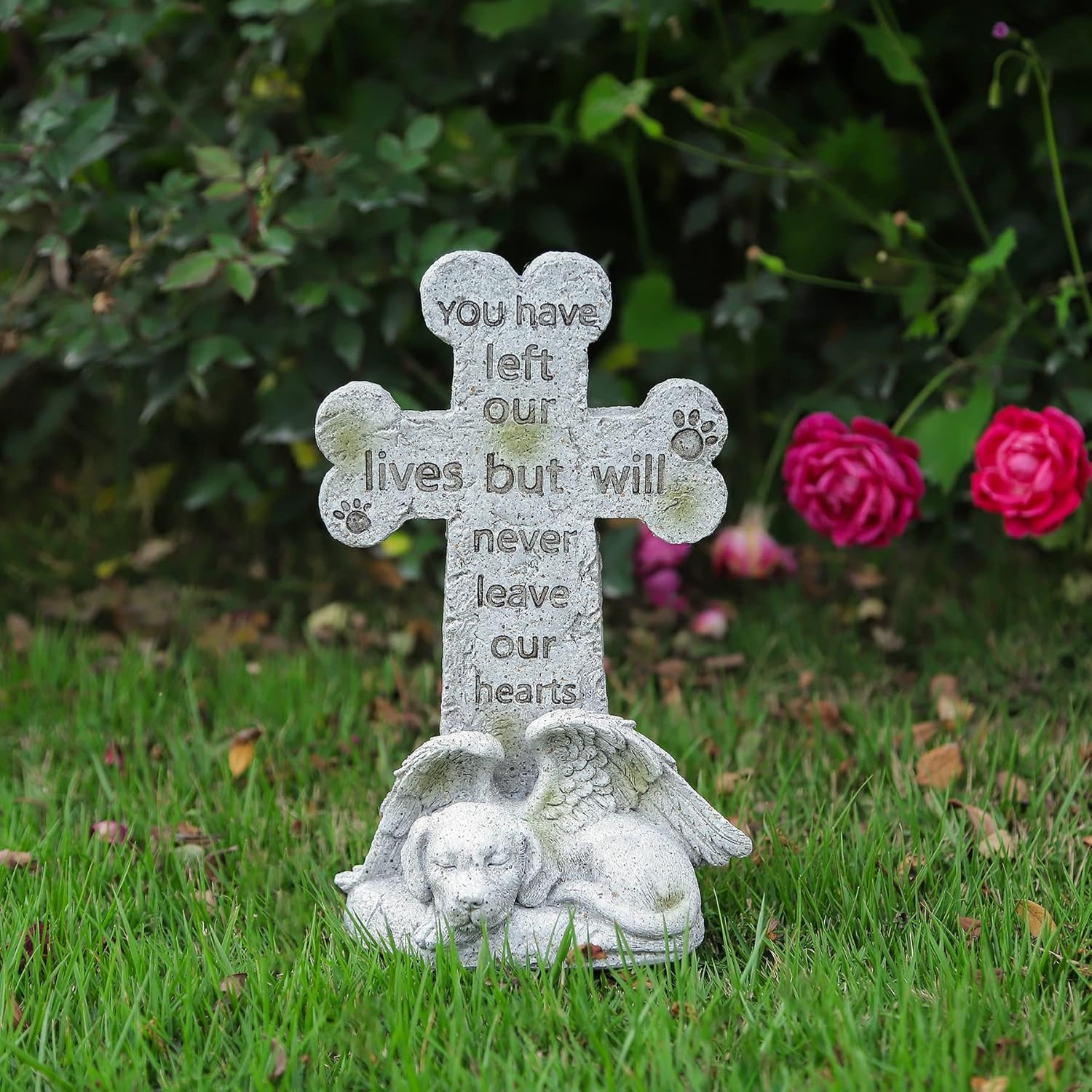 Floryden Memorial Statue - Sleeping Dog Angel Cross Tombstone, Grave Marker for