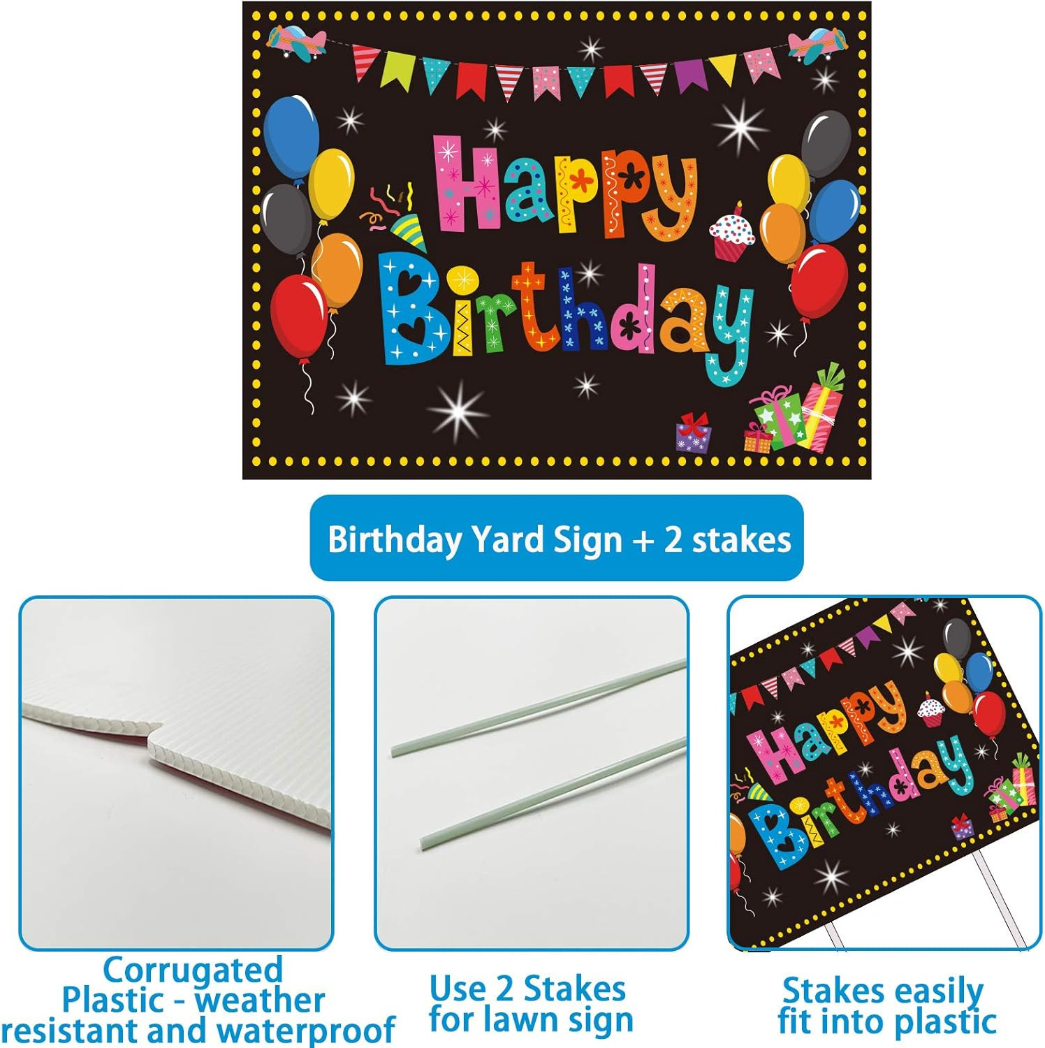 как выглядит Happy Birthday Party Yard Sign Colorful Birthday Garden Yard Signs with Stakes K фото