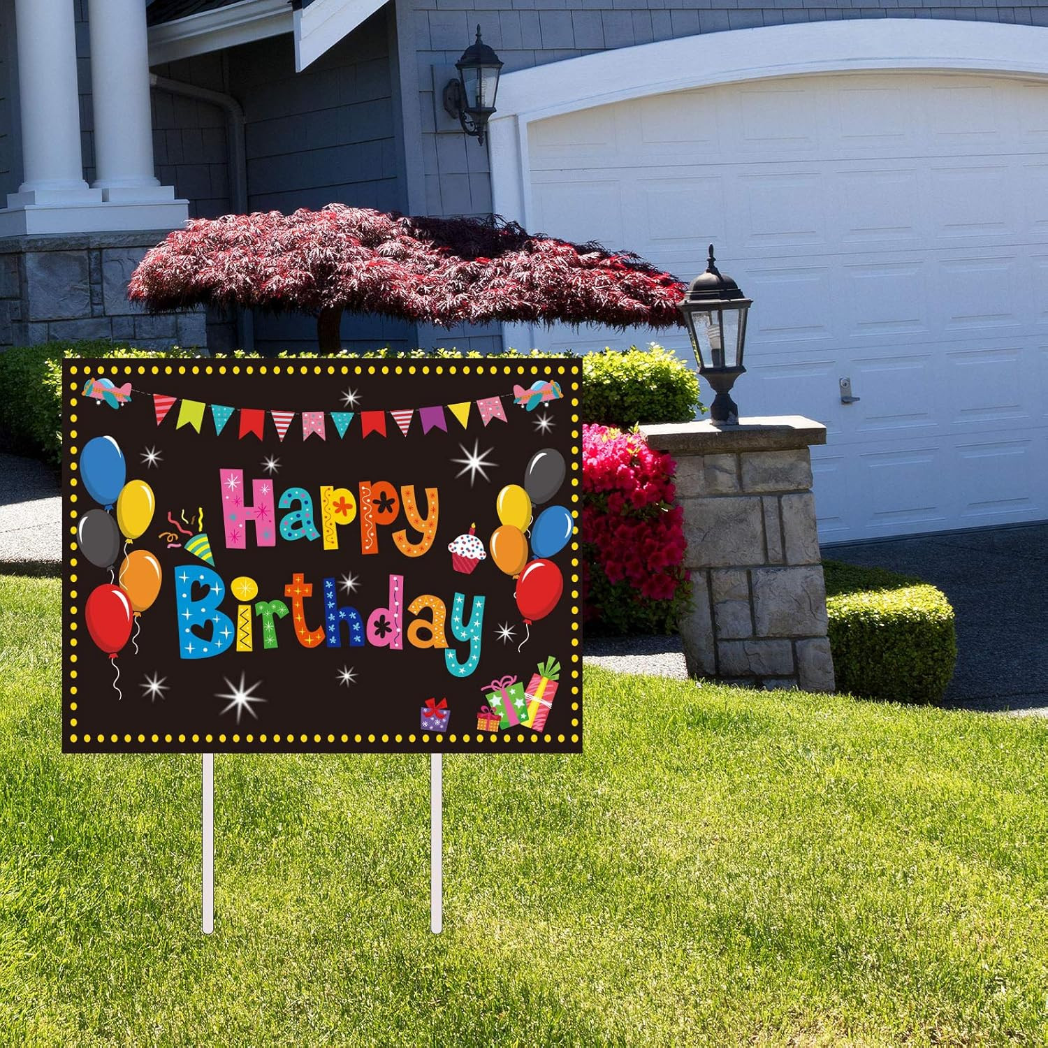 Happy Birthday Party Yard Sign Colorful Birthday Garden Yard Signs with Stakes K