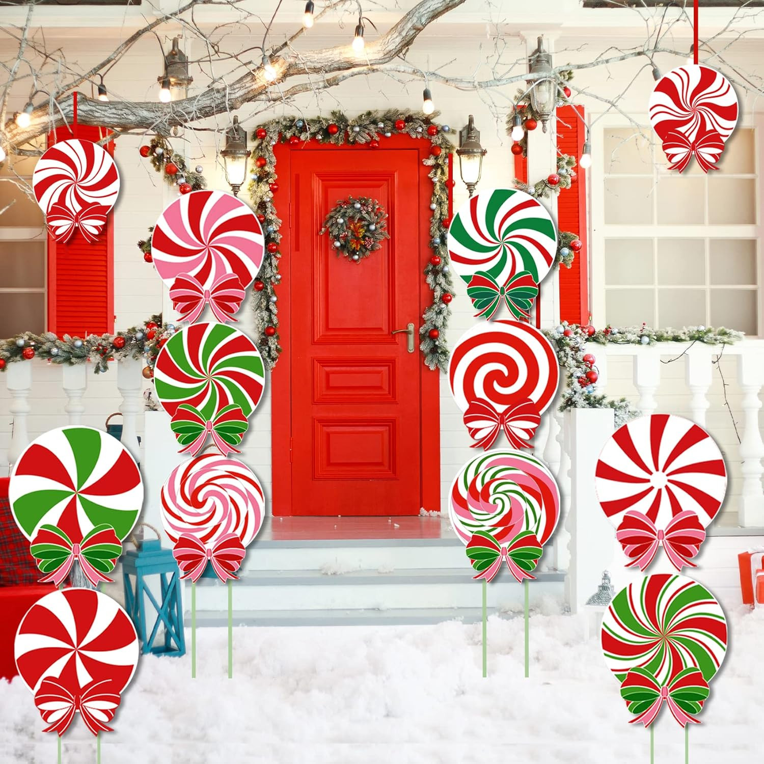 12 PCS Christmas Outdoor Yard Signs Candy Decorations Outdoor Peppermint LED Lig