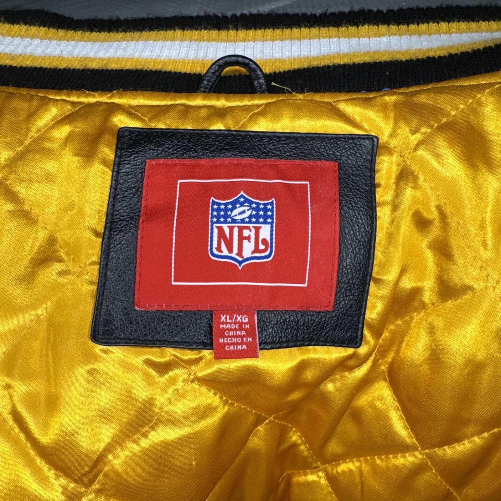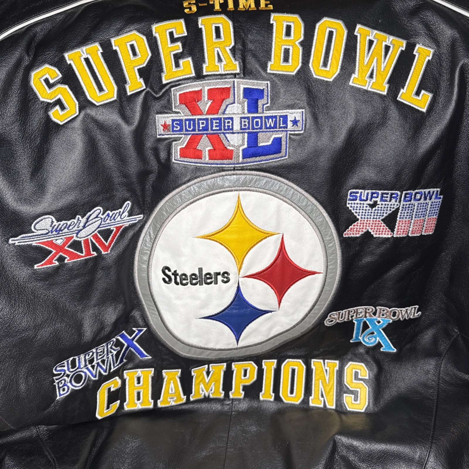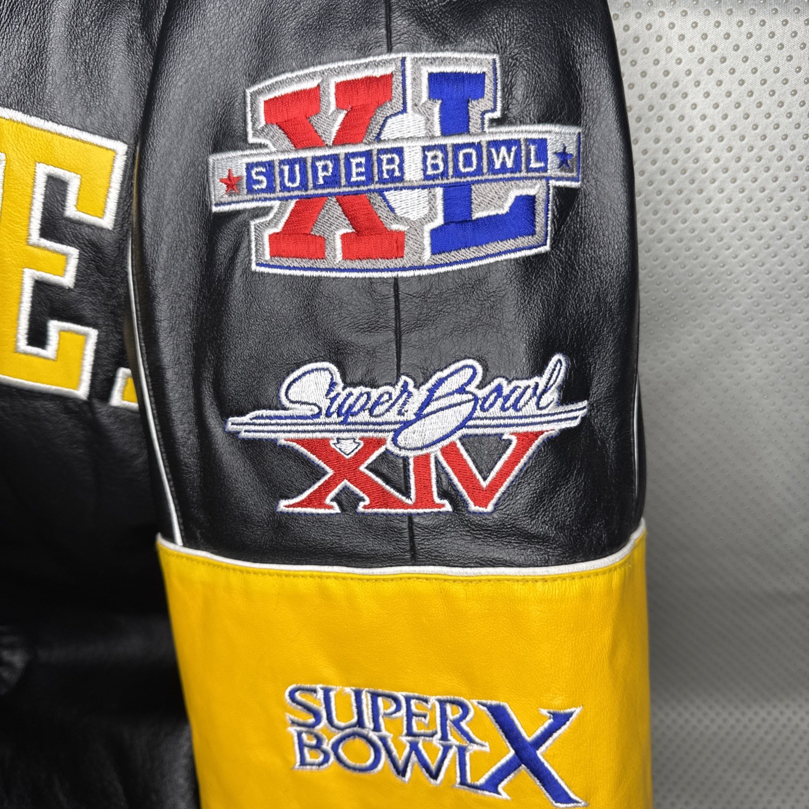 • NFL 100 Leather Jacket Pittsburgh Steelers 5 Time Super Bowl Champions Size L
