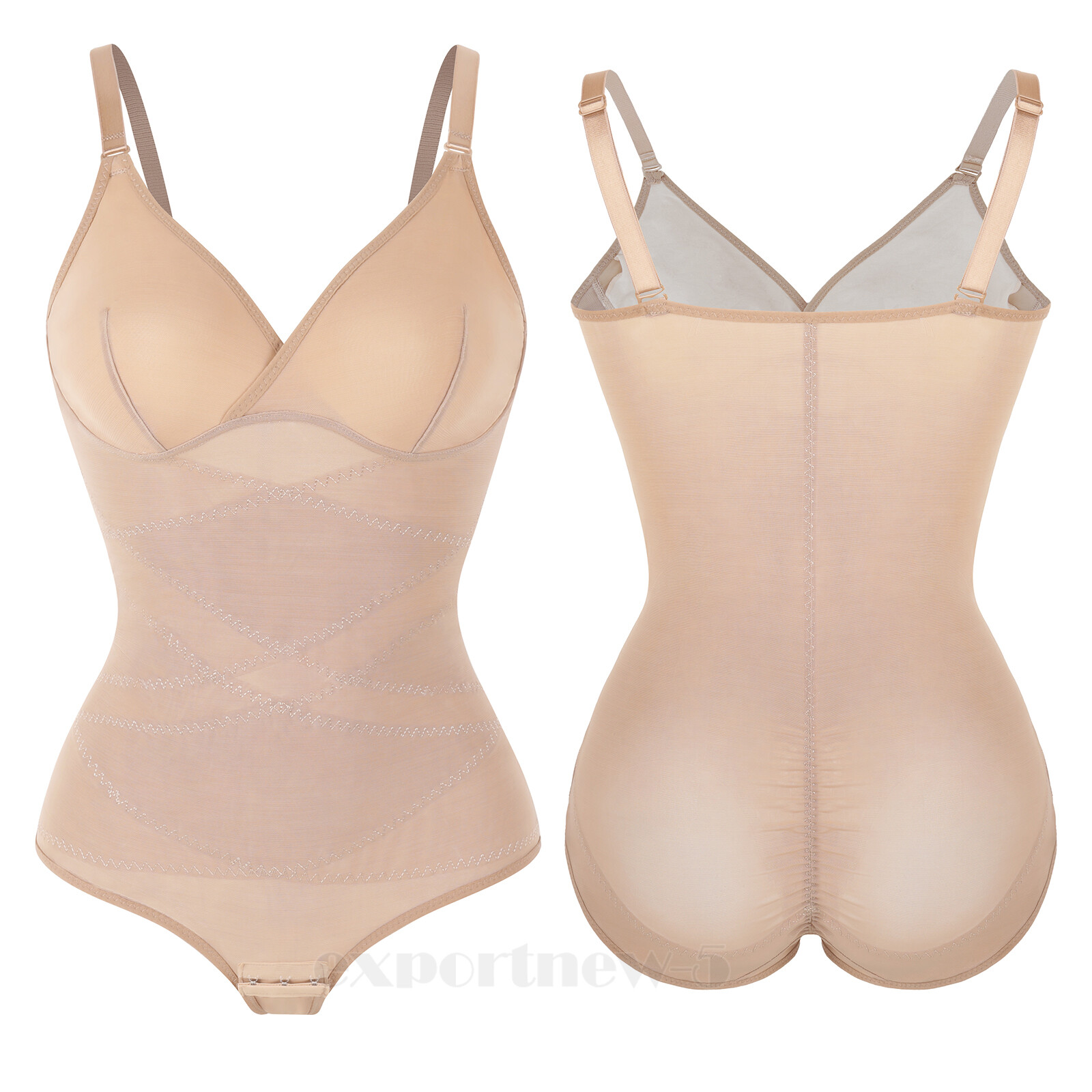 Women Tummy Control Body Shaper Cami Bodysuit with Built in Bra Mesh Breathable
