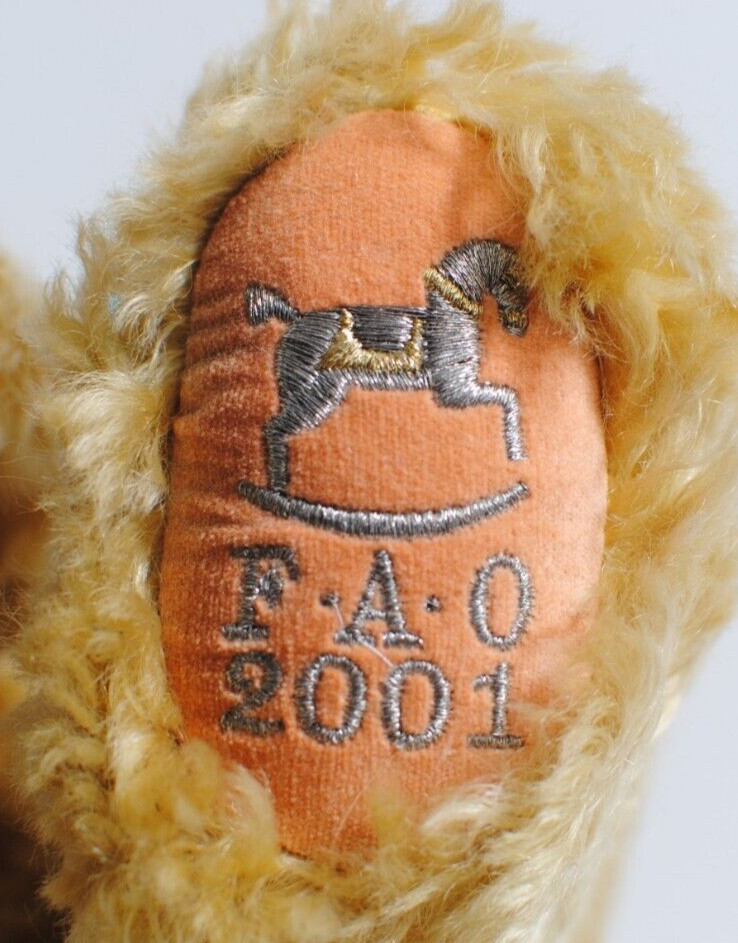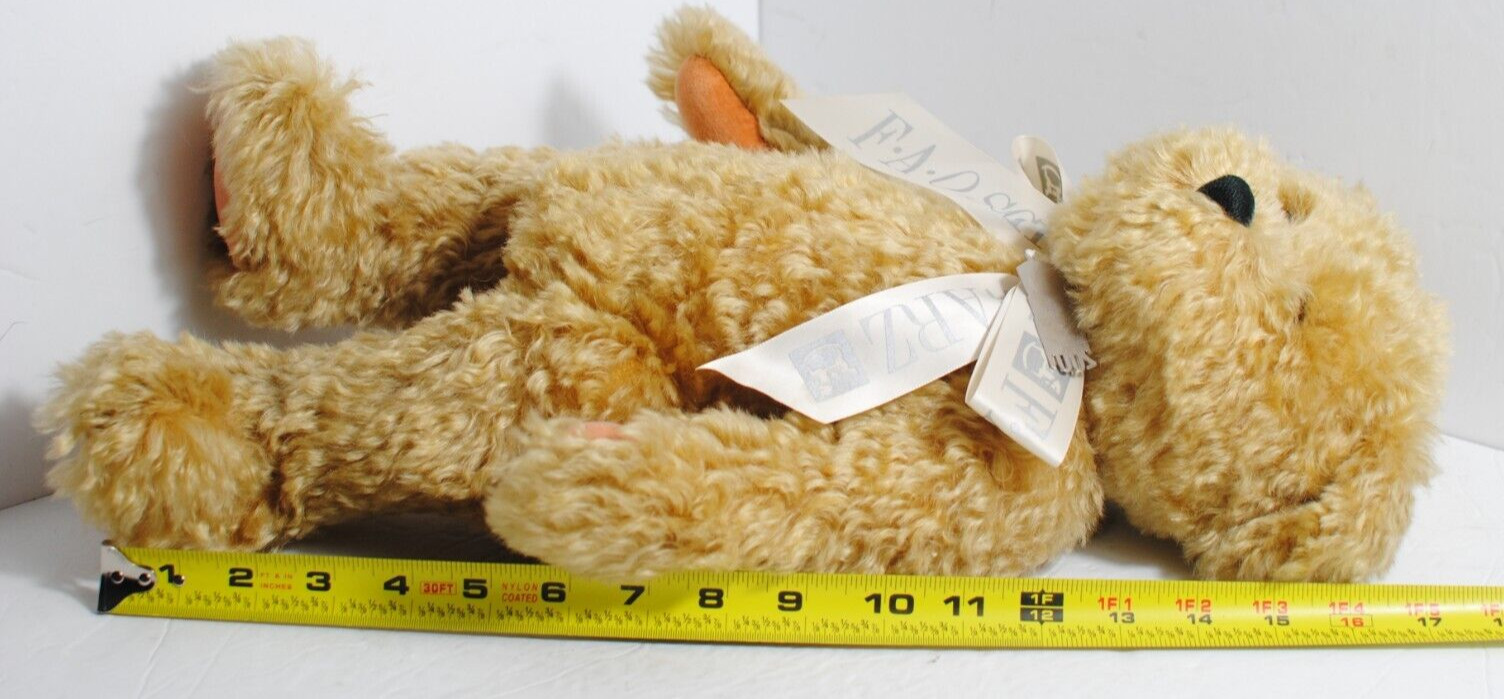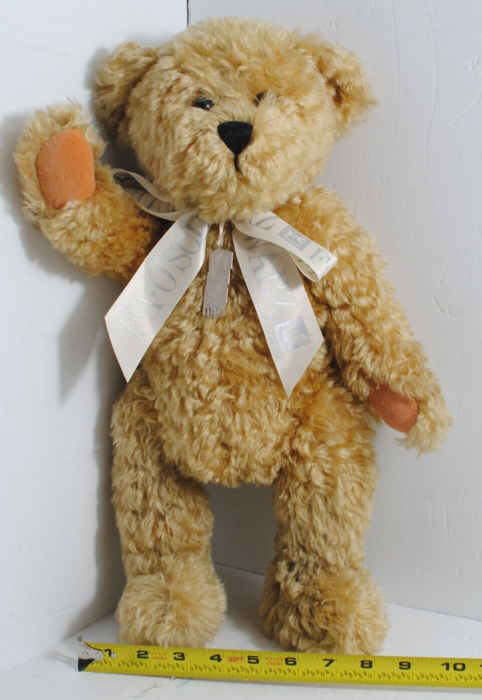 как выглядит VINTAGE 2001 FAO Schwarz Fifth Avenue Plush Teddy Bear Tan Jointed White Bow Tag фото
