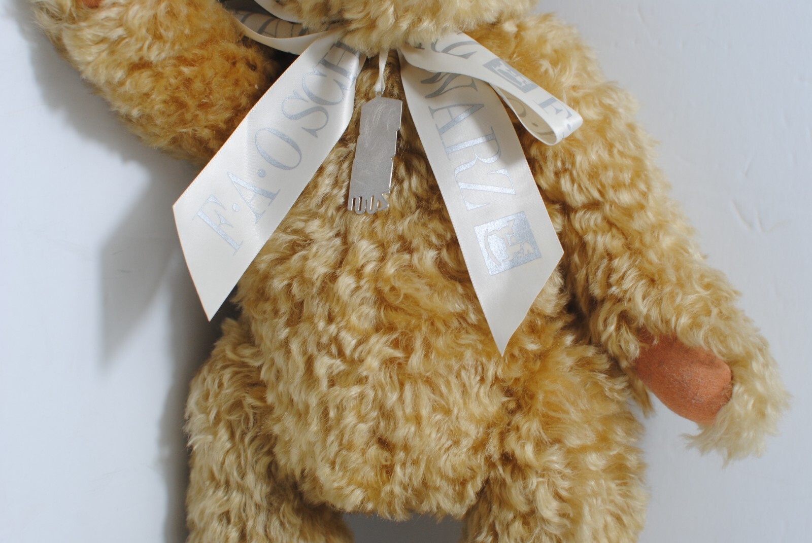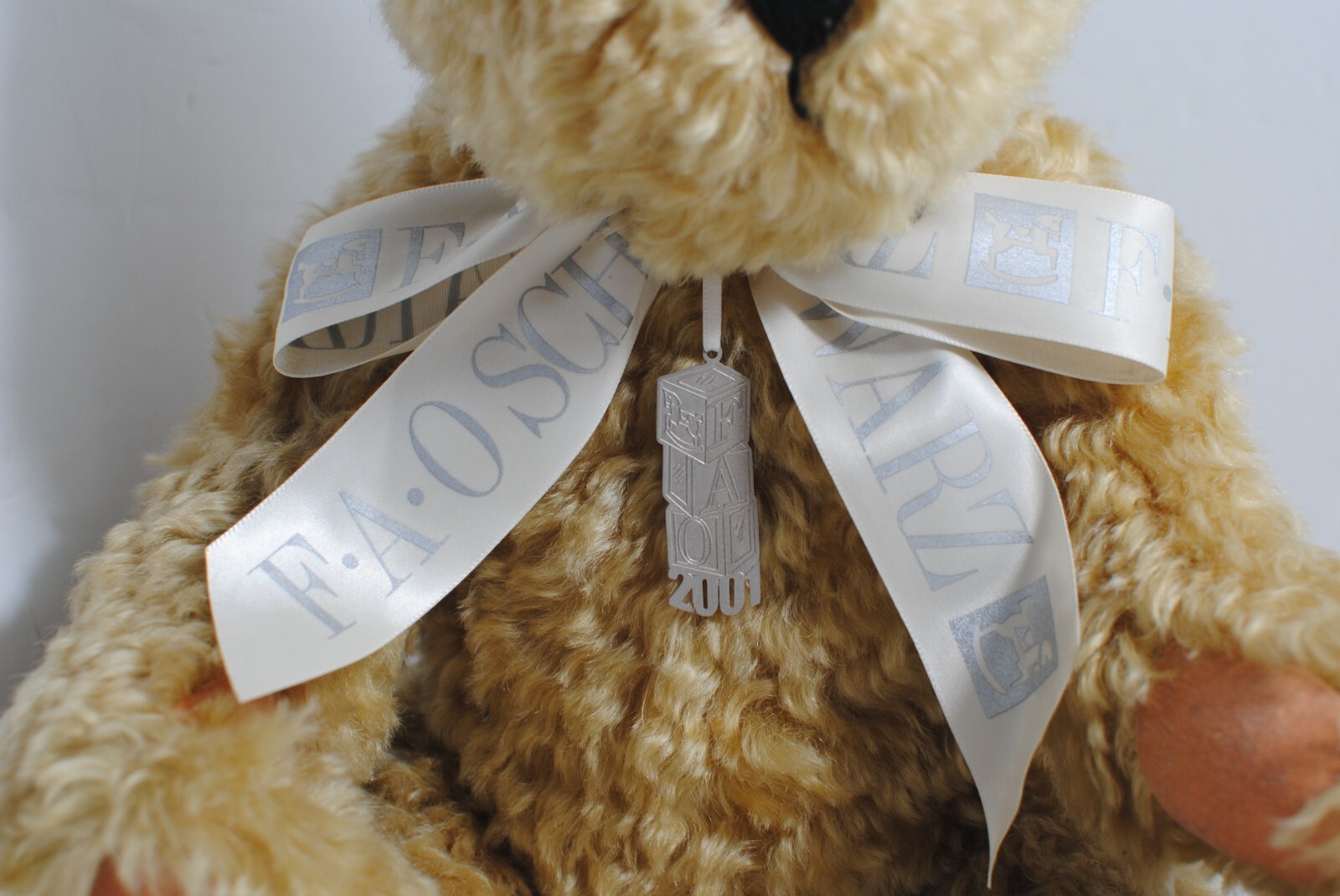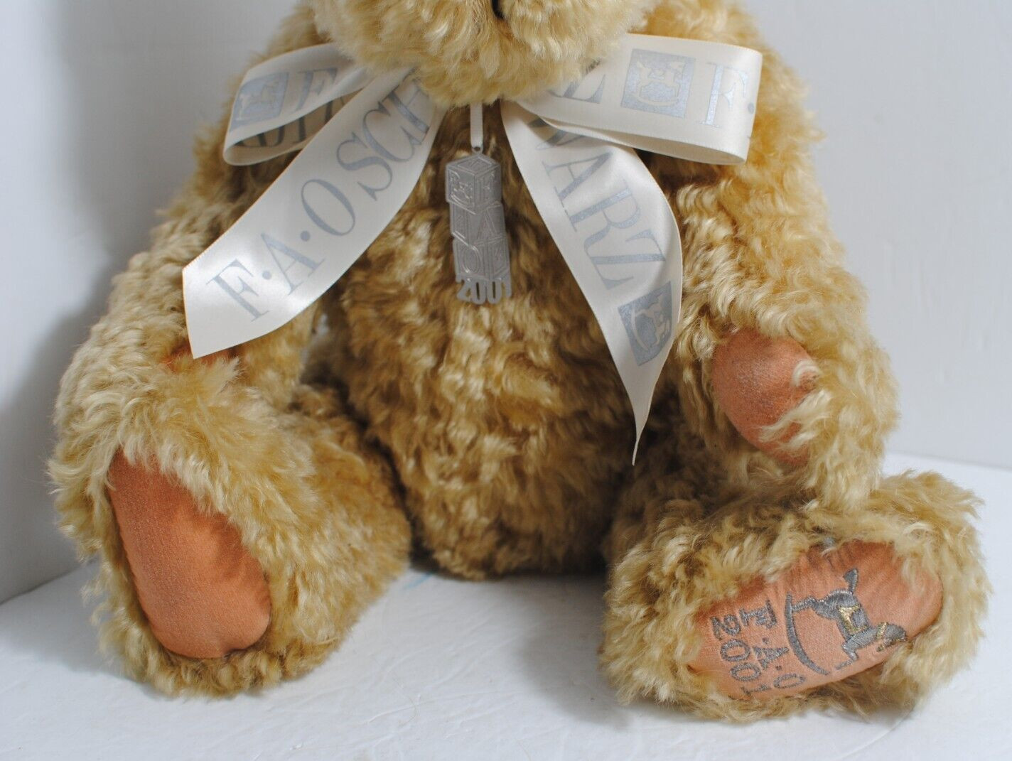 как выглядит VINTAGE 2001 FAO Schwarz Fifth Avenue Plush Teddy Bear Tan Jointed White Bow Tag фото