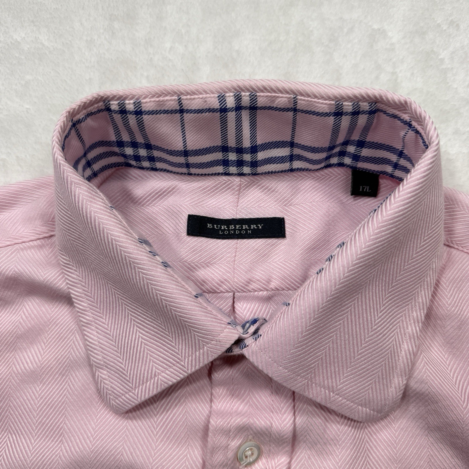 Burberry London Shirt Men s 16.5 L Herringbone Pink Nova Check French Cuff USA