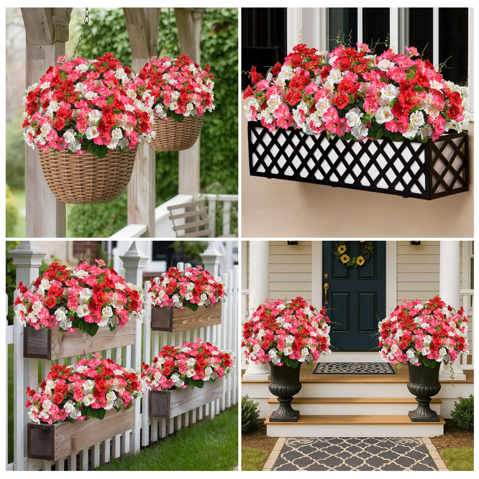 Artificial Flowers for Outdoors 6 Bundles UV Resistant Silk Flowers for Outsi...