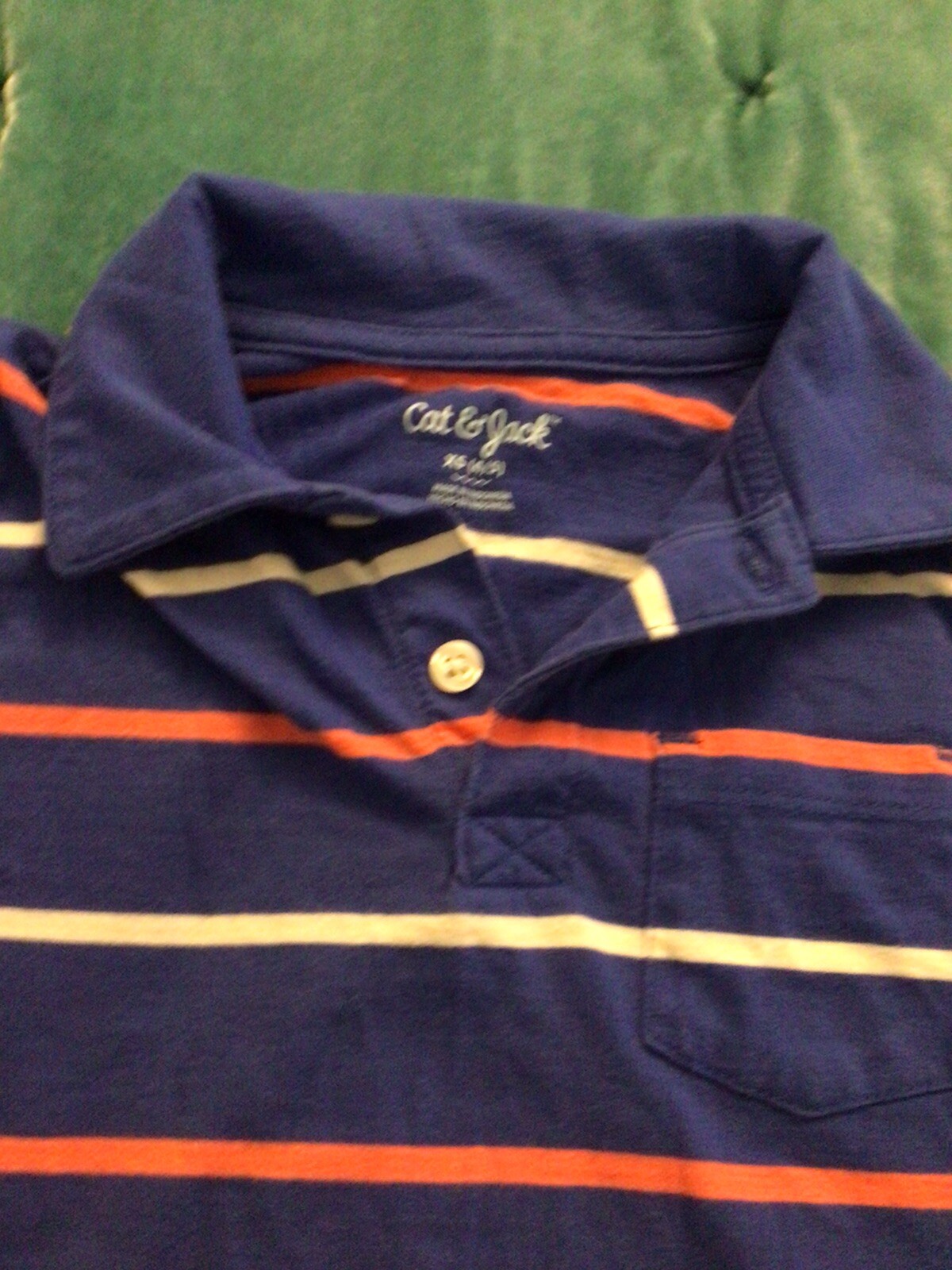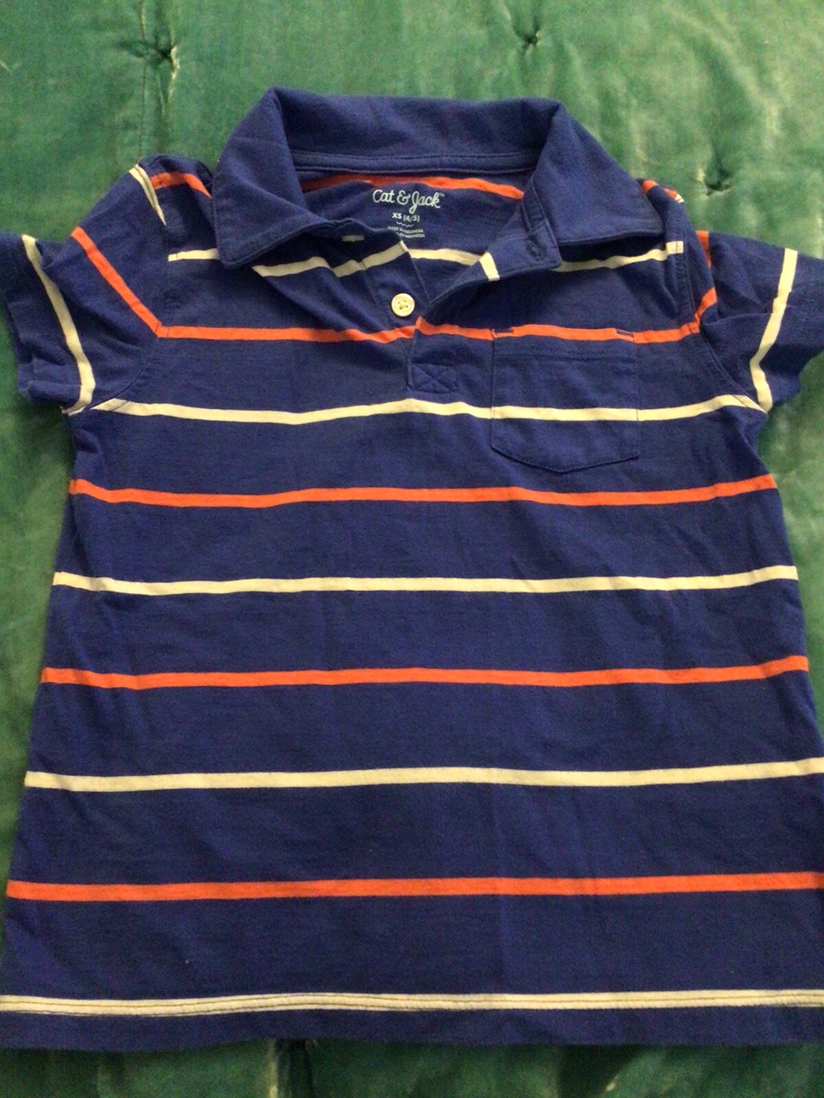 Cat Jack Boy s Polo Shirt Blue Orange White Stripes size XS 4/5