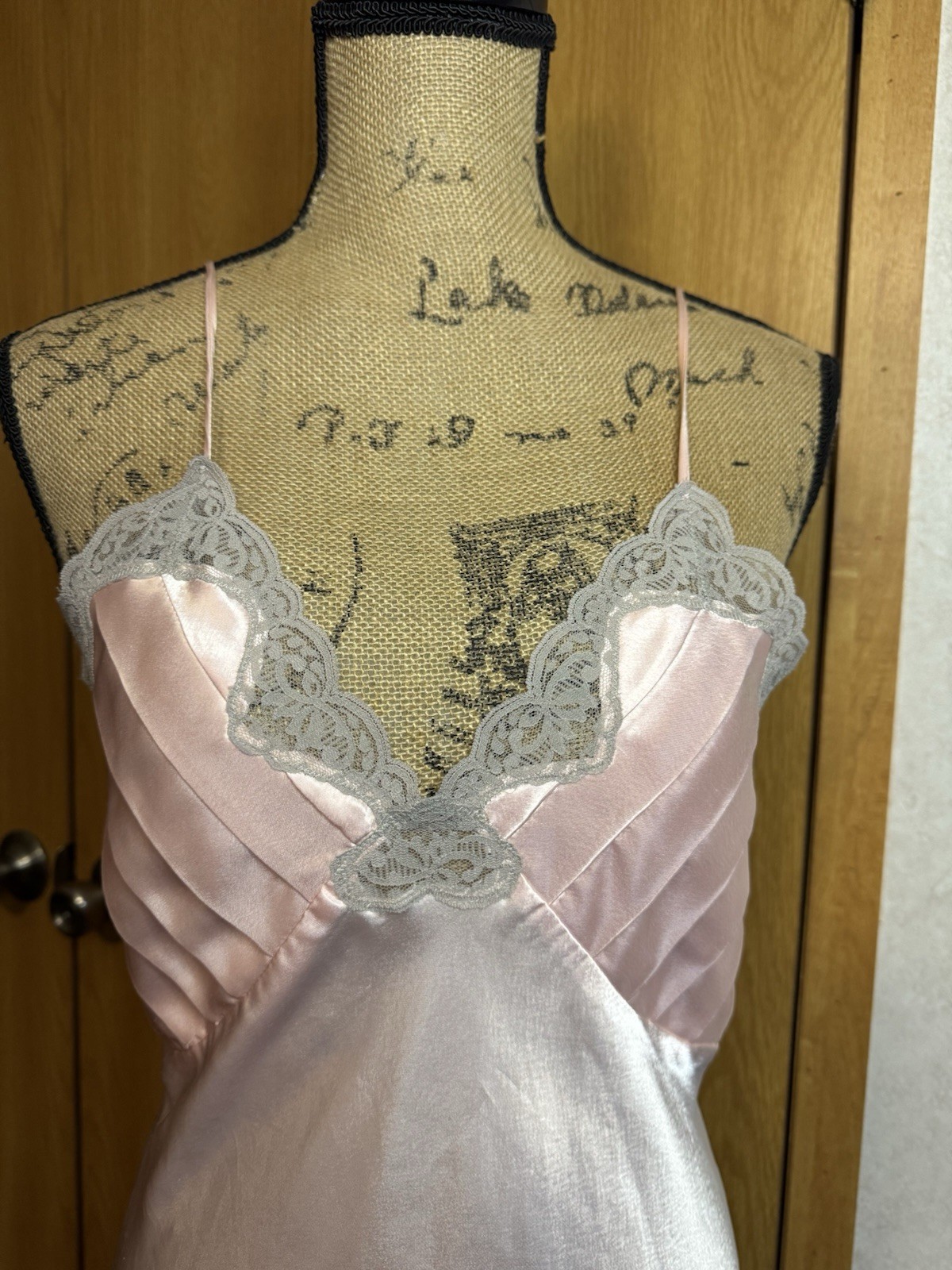 VTG VICTORIA S SECRET Gold Label Satin Slip Dress Lingerie Pink Lace Pleats M