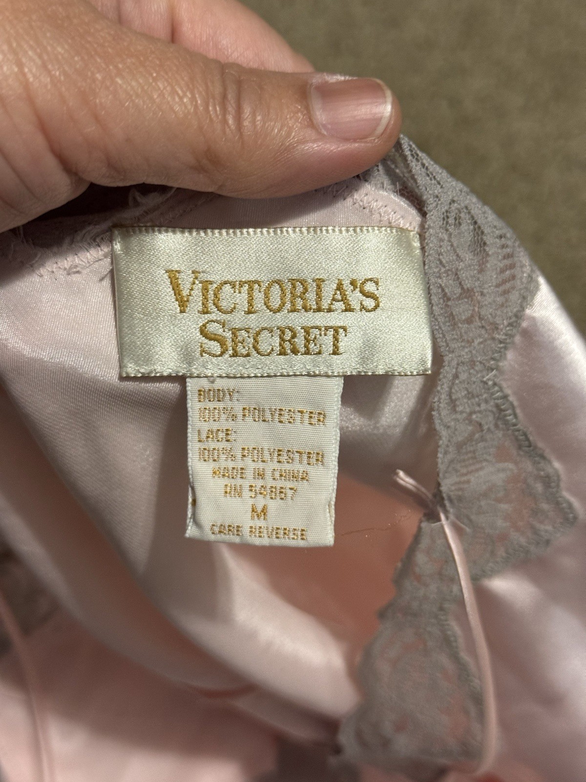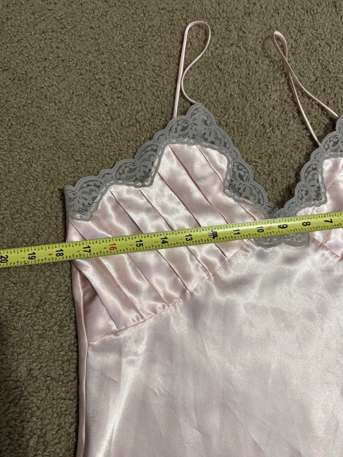 как выглядит VTG VICTORIA S SECRET Gold Label Satin Slip Dress Lingerie Pink Lace Pleats M фото