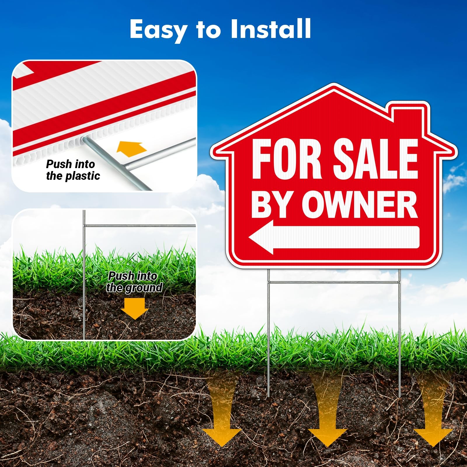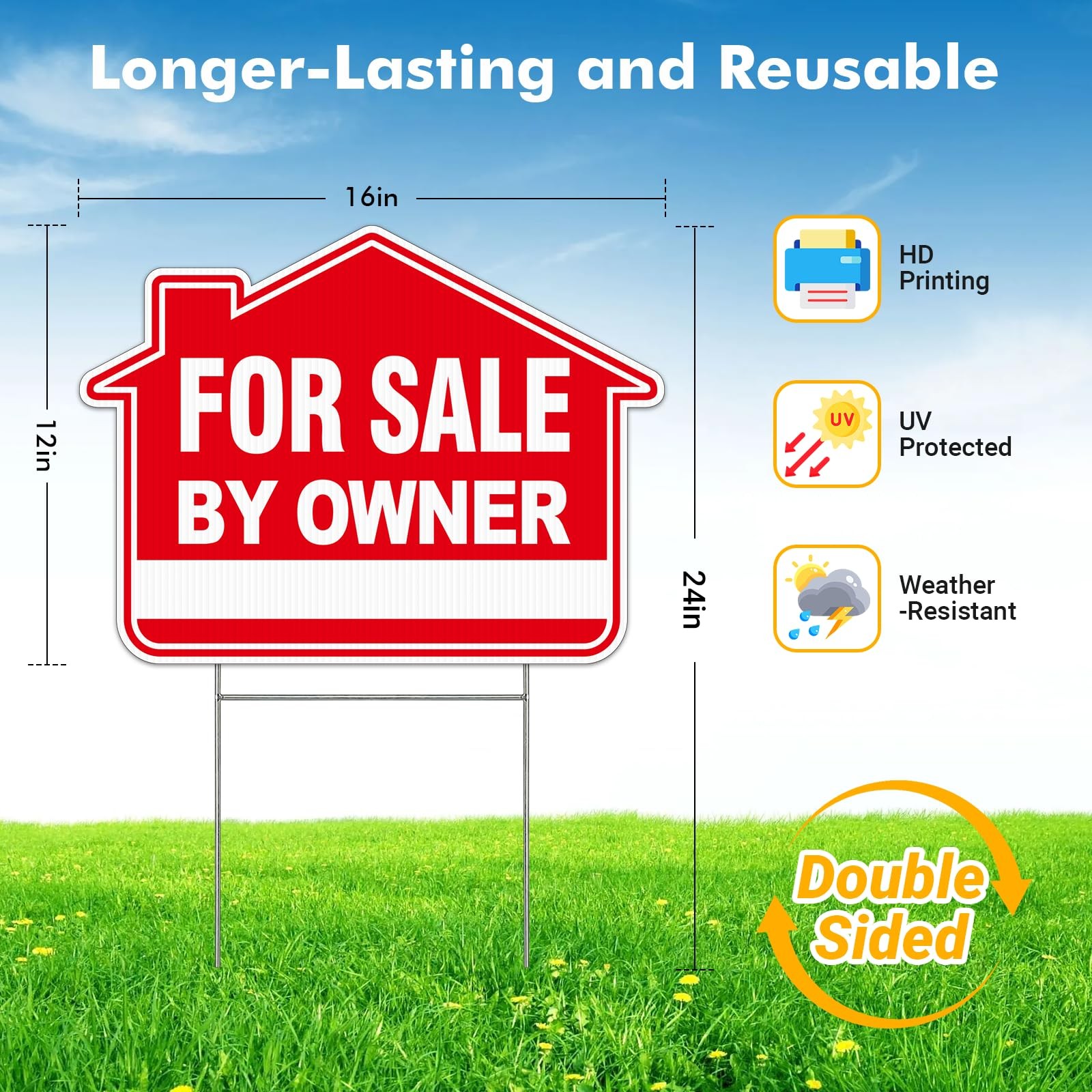 3Pack For Sale by Owner Sign with Metal H -Stakes, 16x12 Double Sided Corru...