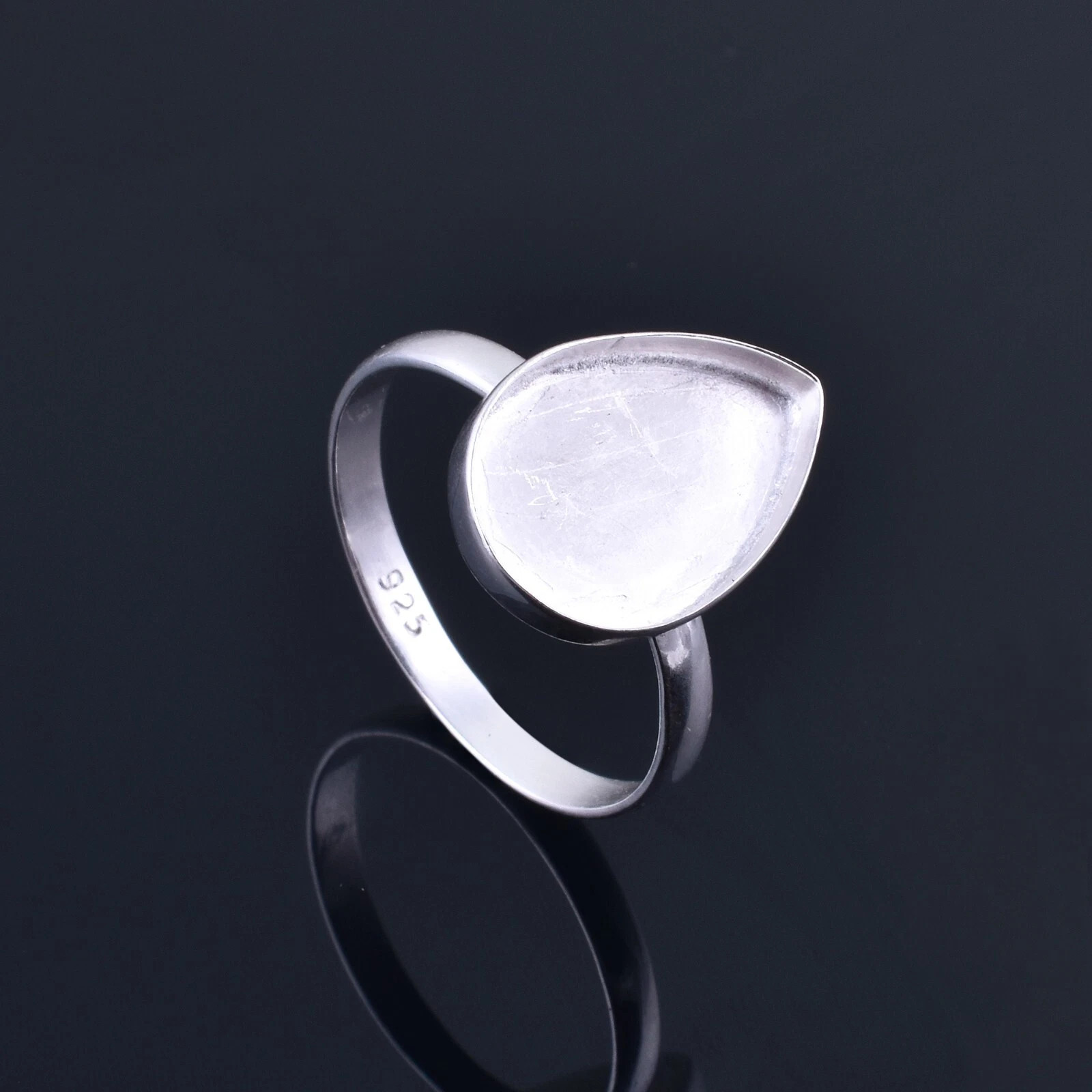 925 Sterling Silver 10x12mm Teardrop Blank Bezel Cup Stone Setting Ring Supplies