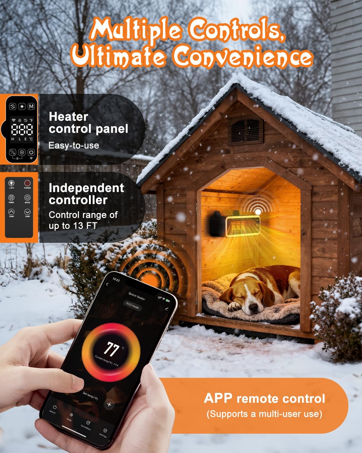 1200W Dog House Heater with Thermostat WIFI Control, Dog Heaters for Outside ...