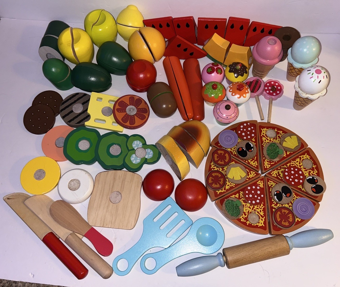 Melissa Doug Cutting Fruit Vegetable Lot Wooden Pretend Play Food Kitchen