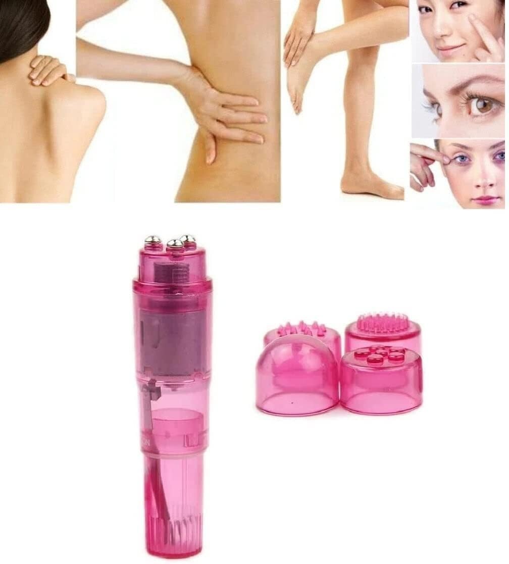 Portable Pink Body Massager with 4 Heads - Perfect for Neck and Shoulder Pain