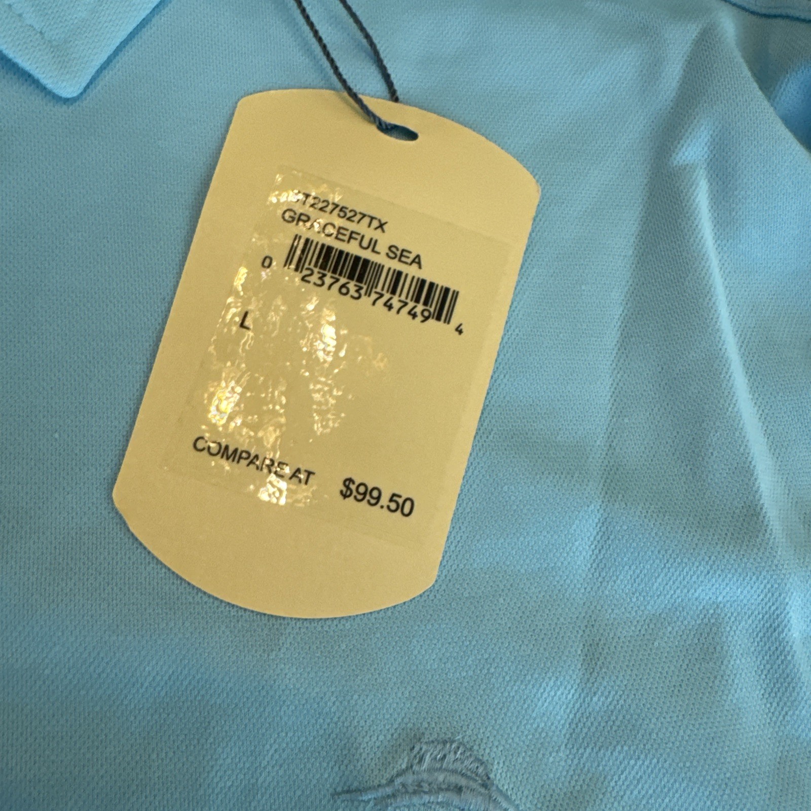 как выглядит Tommy Bahama SZ L Mens SS Graceful Sea Blue Cotton Poly Performance Polo NWT фото