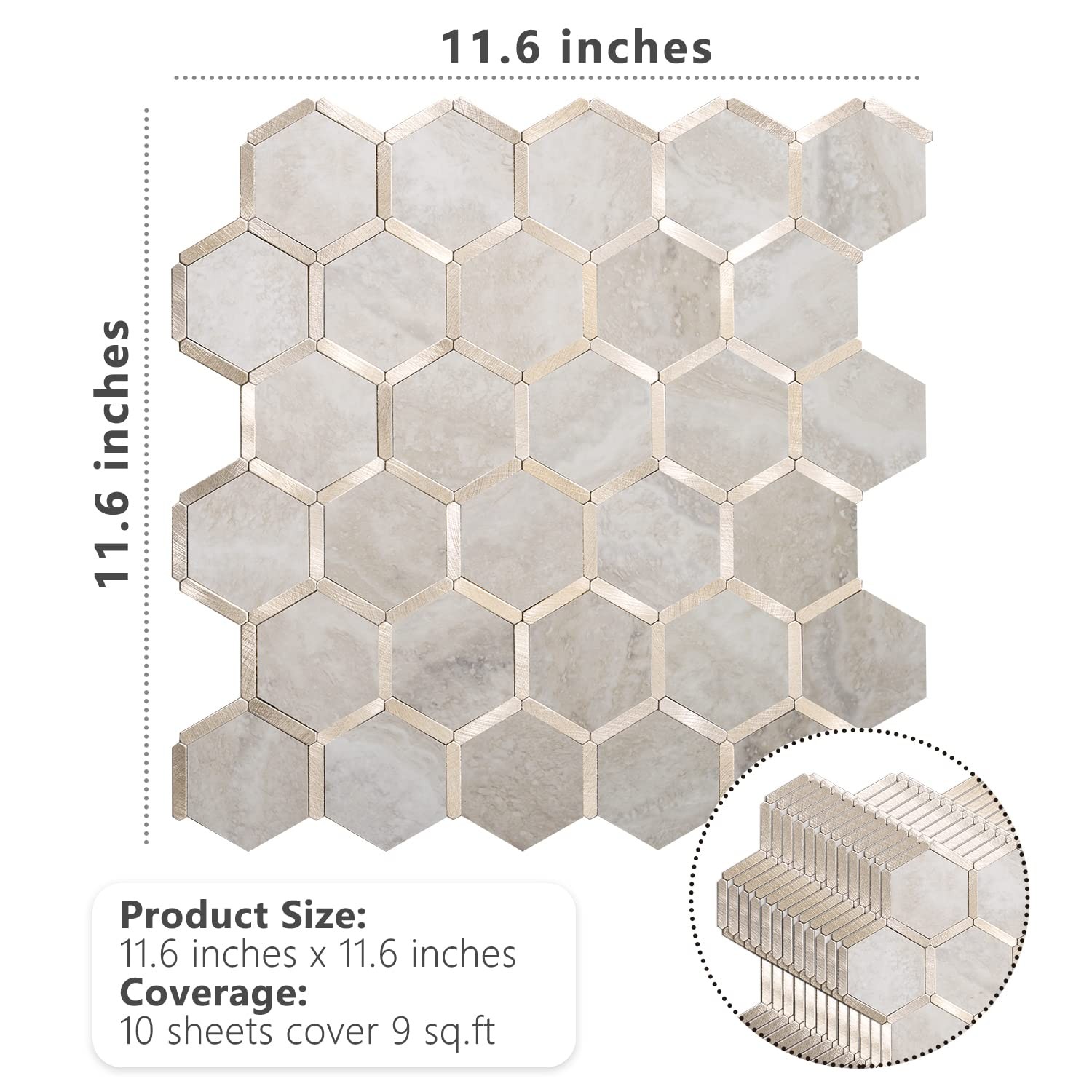 Hexagon Peel and Stick Backsplash Tile, Stick 1 Beige Marble with Metal Gold