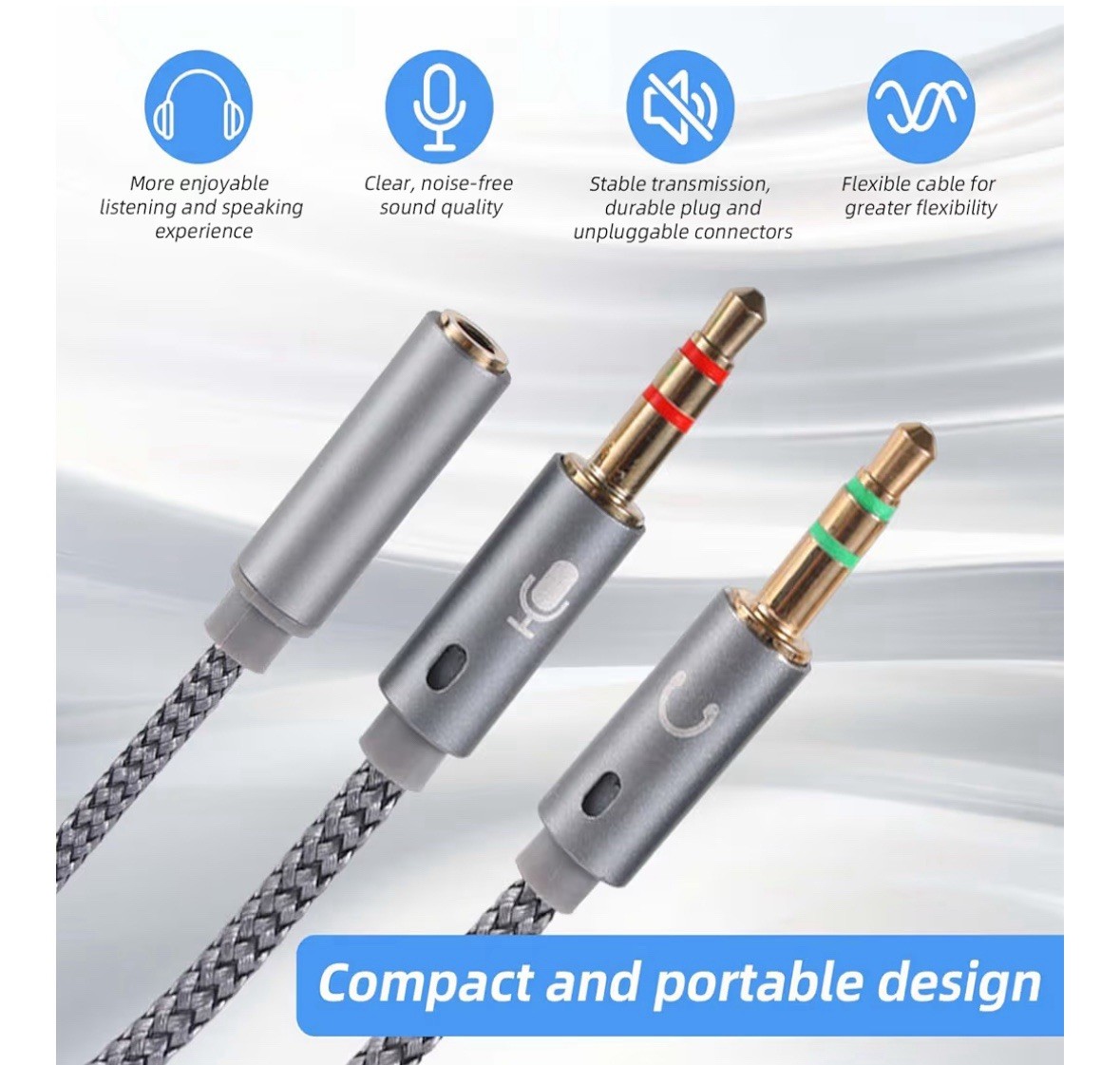 как выглядит BTFO 2-in-1 Headphone Microphone Splitter Cable, 3.5mm/0.14in Female To Dual M фото
