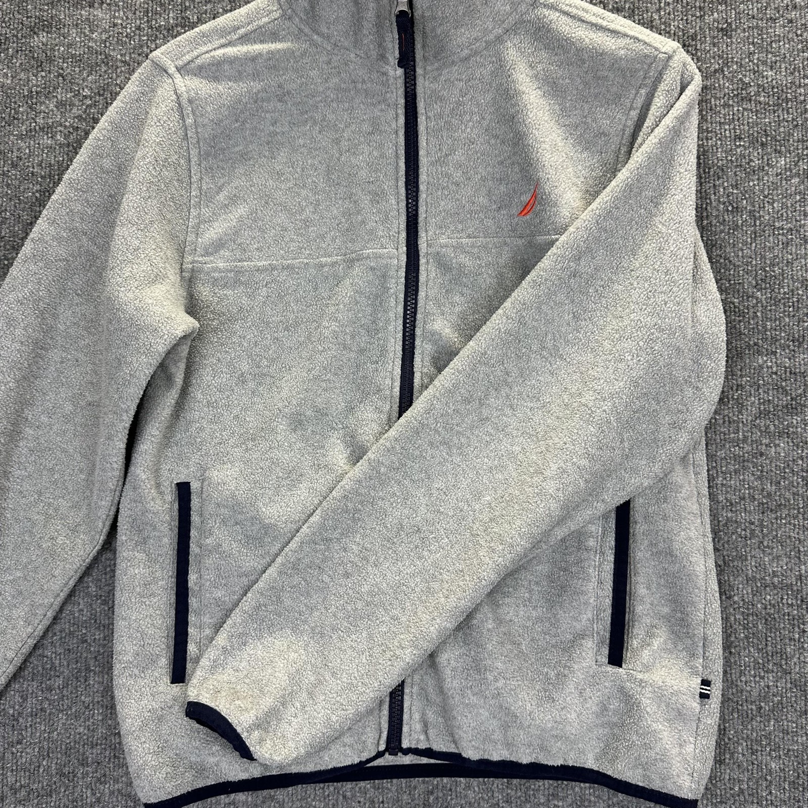 как выглядит Nautica Jacket Boys Large 14/16 Gray Fleece Full Zip Collar Pockets Sail Logo фото
