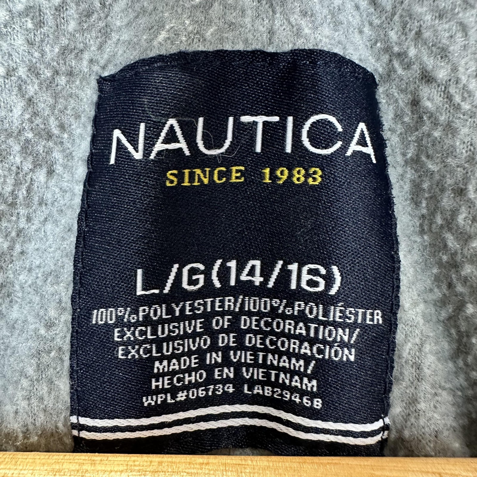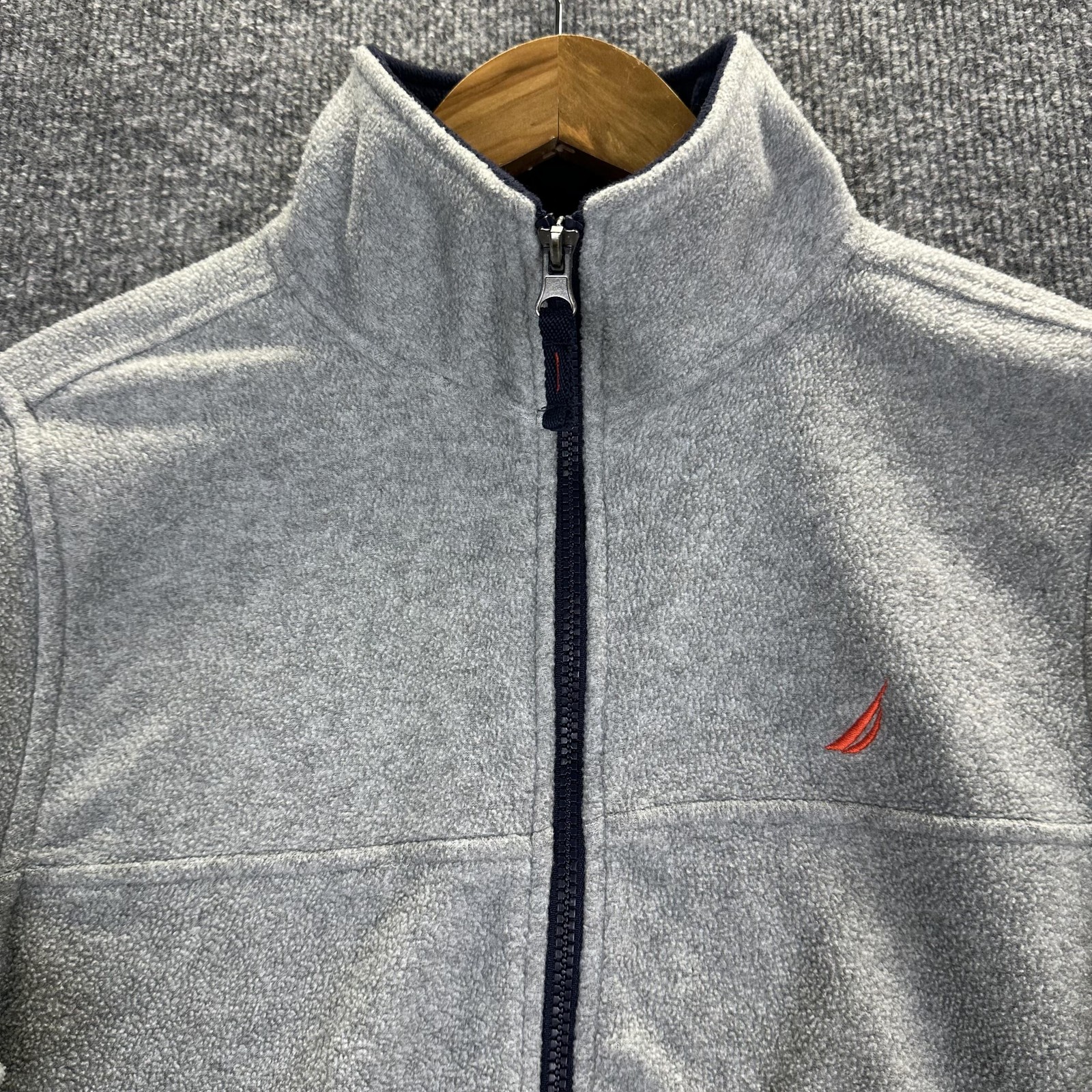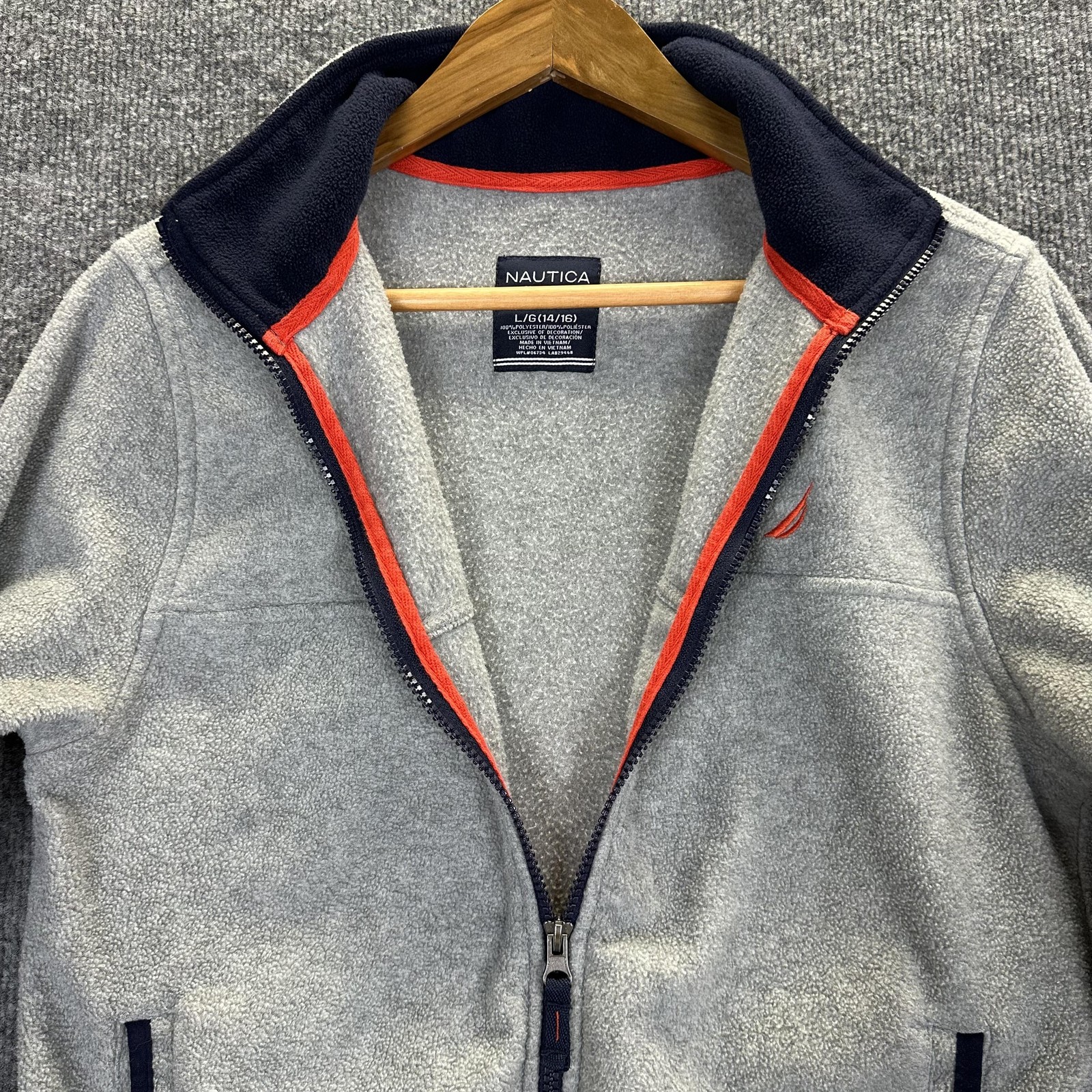 Nautica Jacket Boys Large 14/16 Gray Fleece Full Zip Collar Pockets Sail Logo