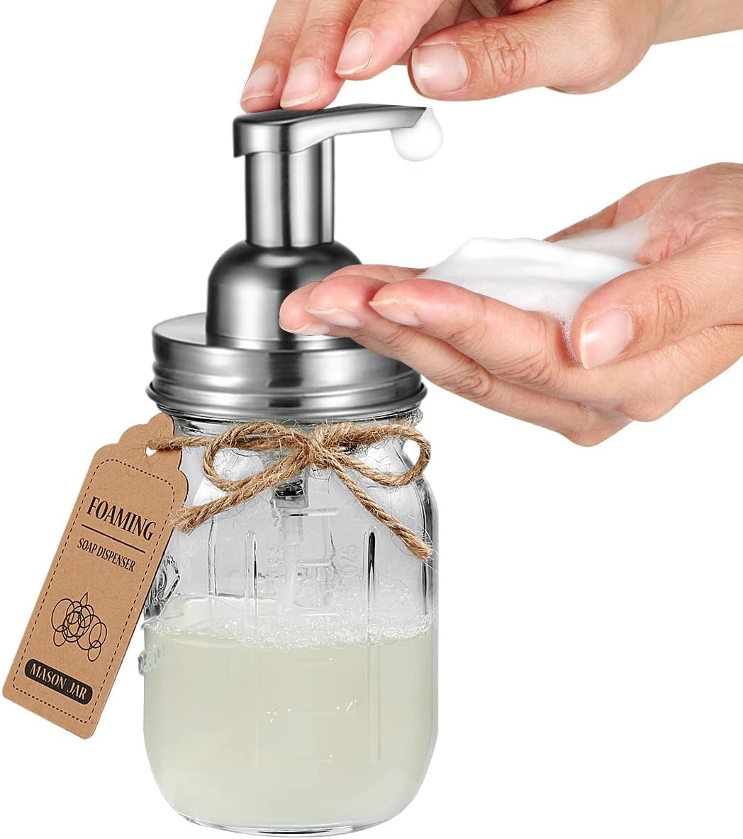 Mason Jar Bathroom Accessories Set 4Pc - Foaming Soap Dispenser 2 Qtip Holders T