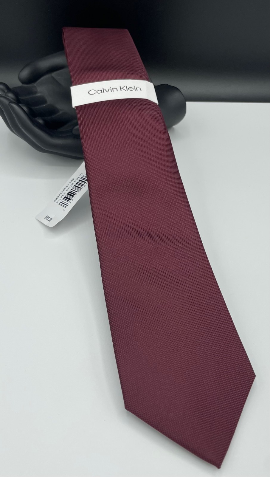 как выглядит Calvin Klein Mens Polyester Tie Burgundy Silver Spun Solid NEW MSRP 69.50 фото