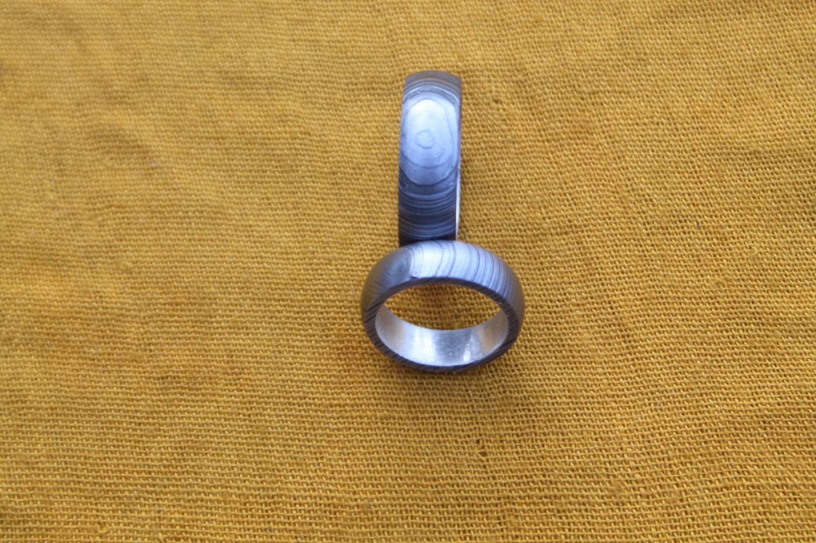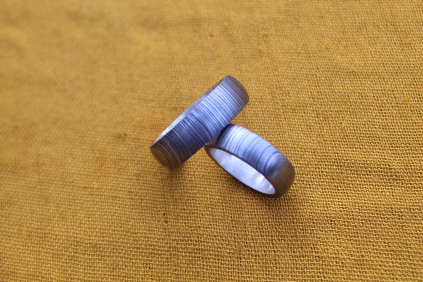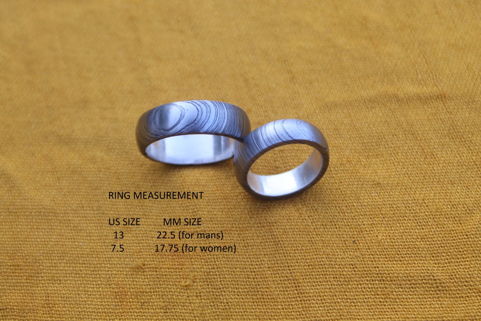 Damascus steel finger ring silver liner inside valentines couple gift 13/7 size