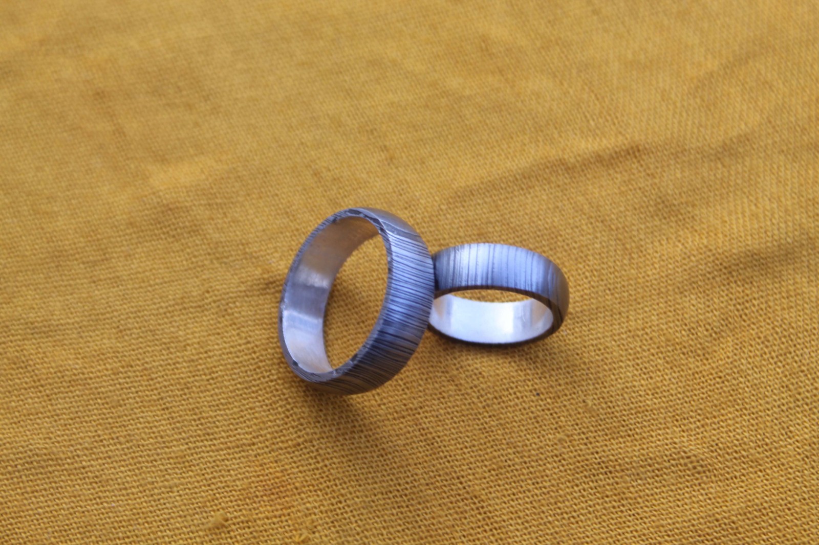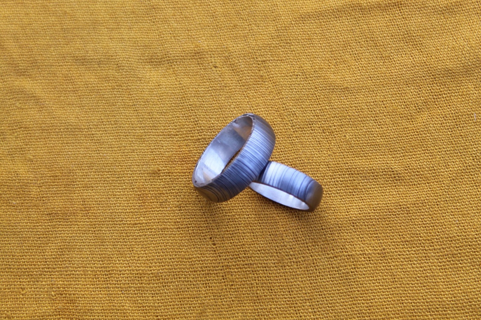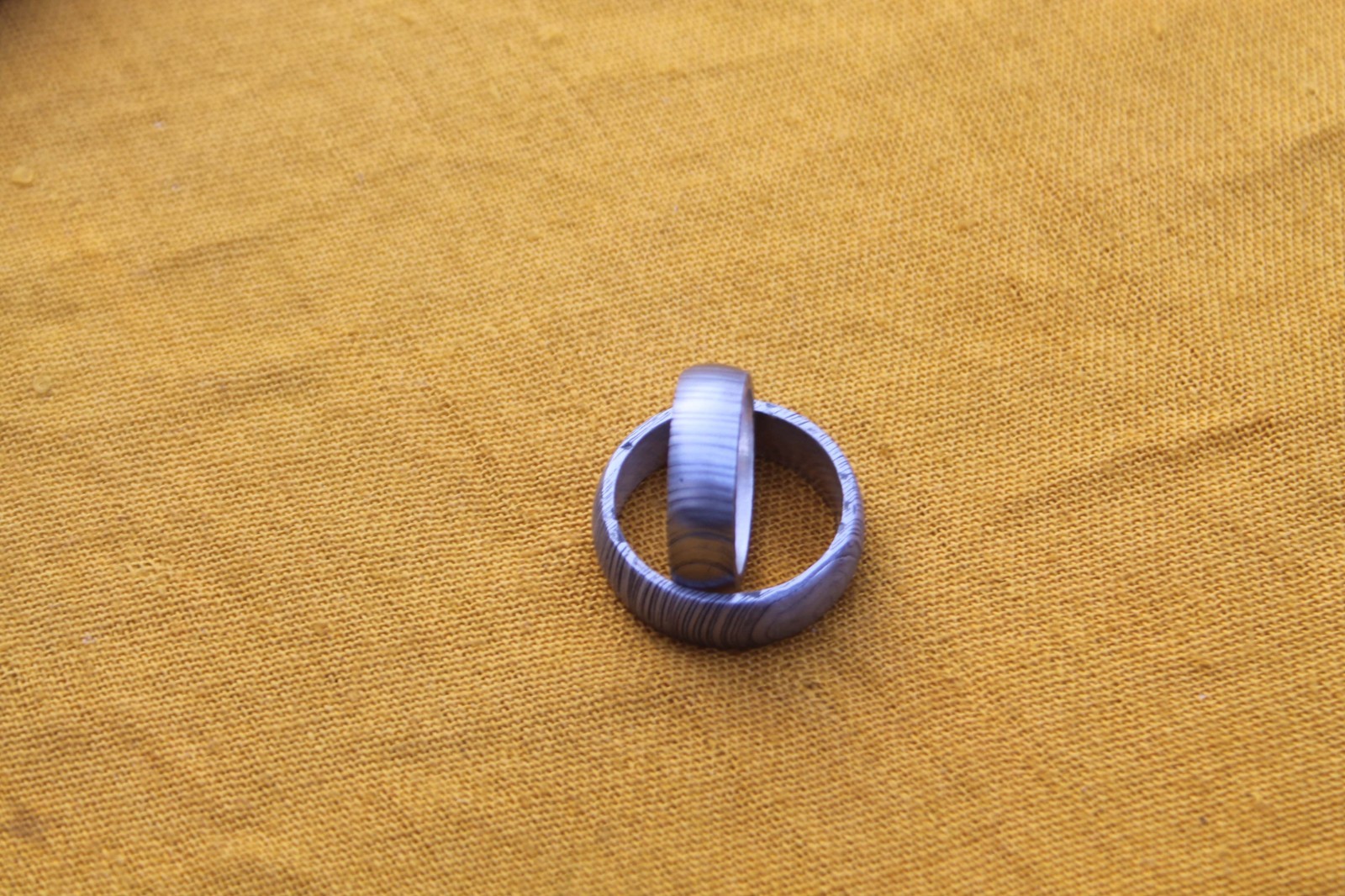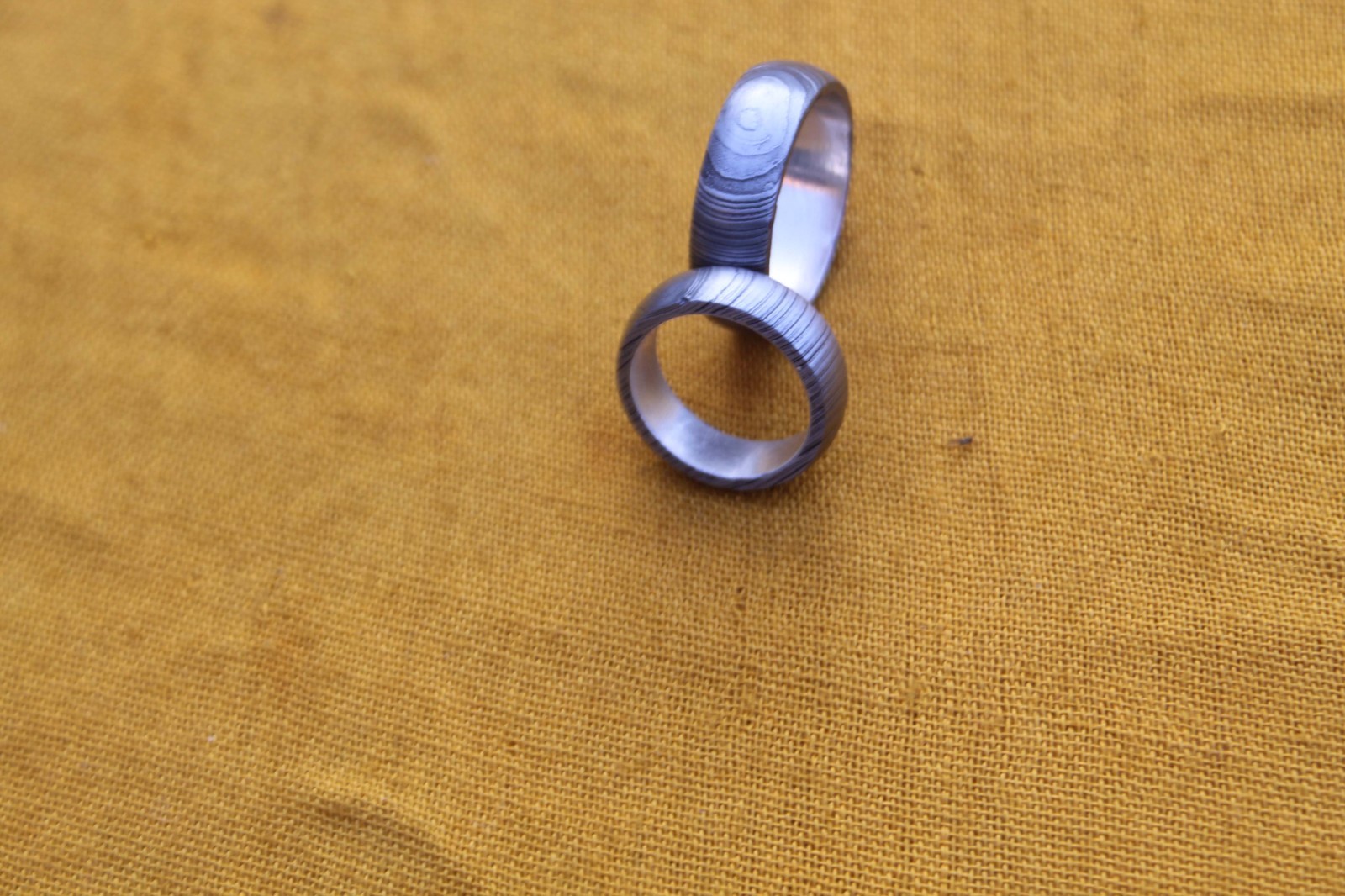 Damascus steel finger ring silver liner inside valentines couple gift 13/7 size