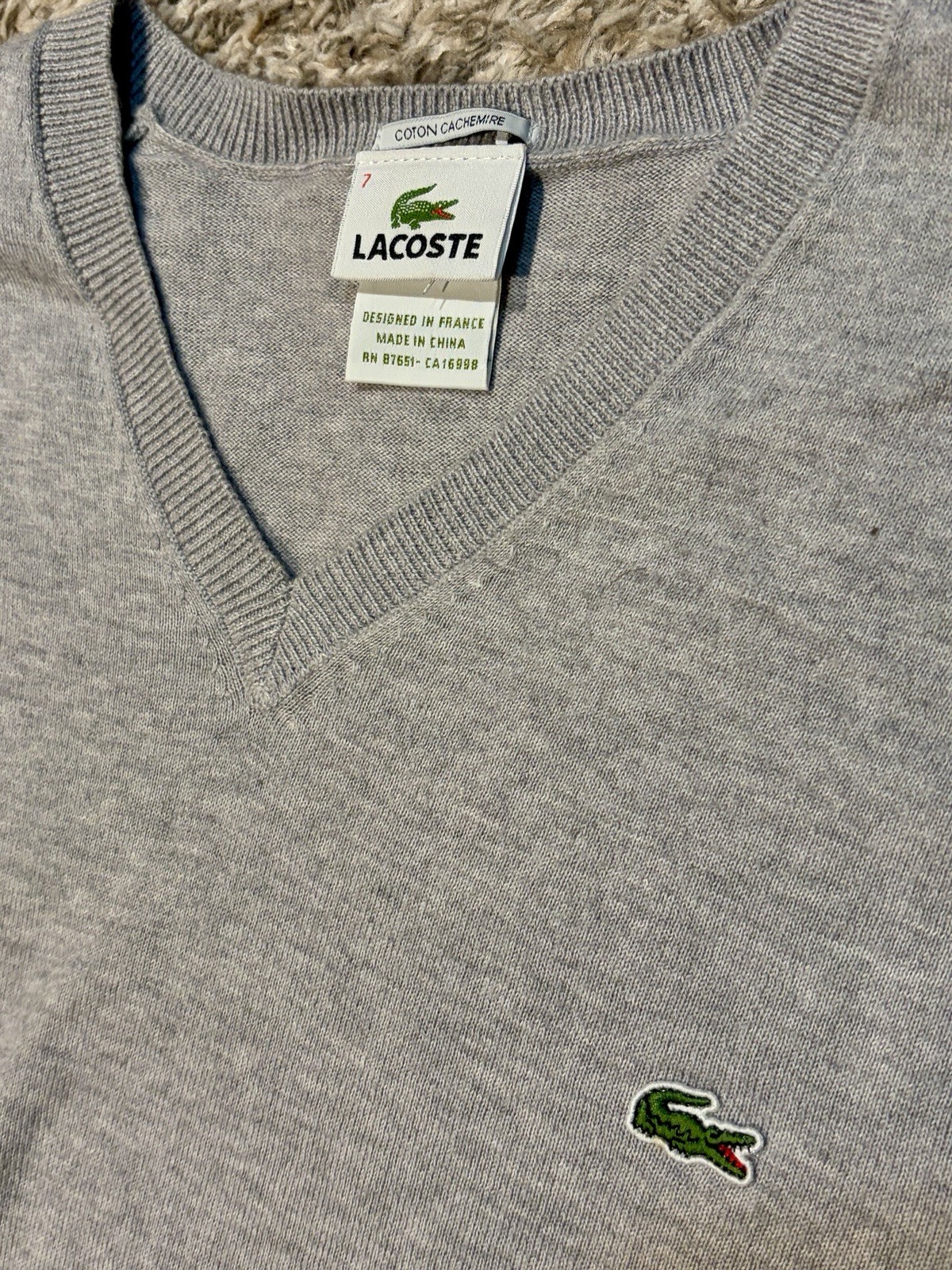как выглядит Lacoste Lightweight Sweater Men s 7 Gray Cotton Cashmere MINT фото