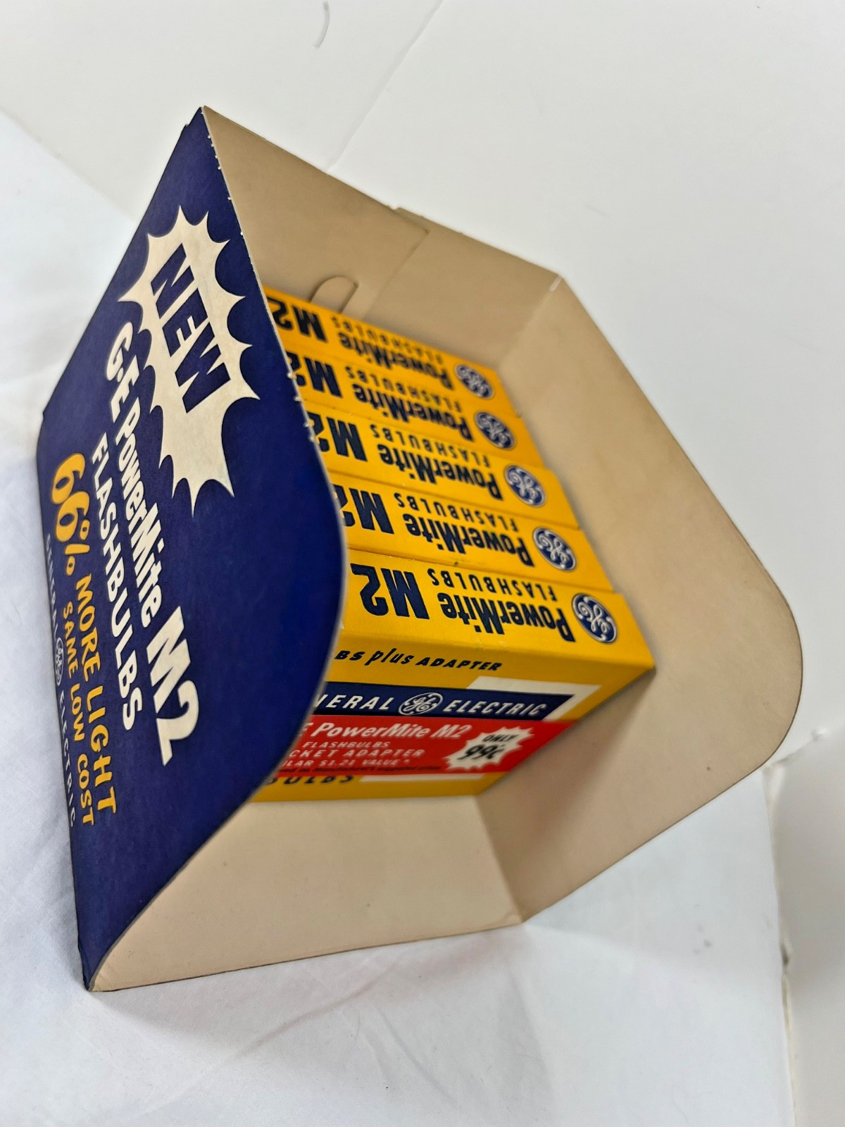 5 packs of vintage GE PowerMite M2 Flashbulbs 55 total display NEW old stock