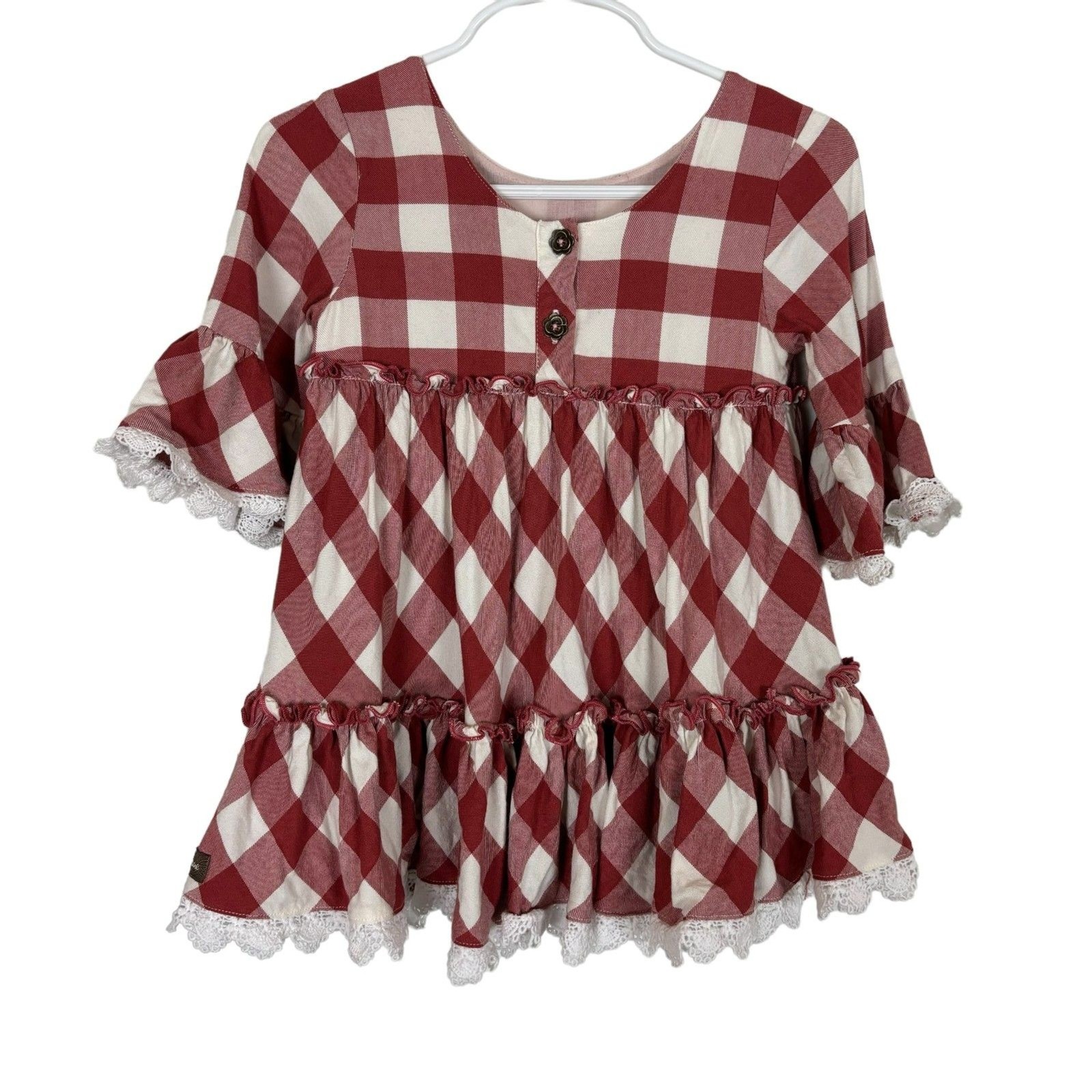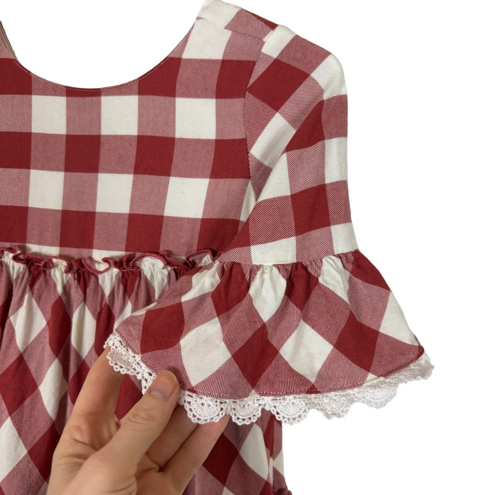 Matilda Jane White Red Checkered Peasant Dress Girls Size 2