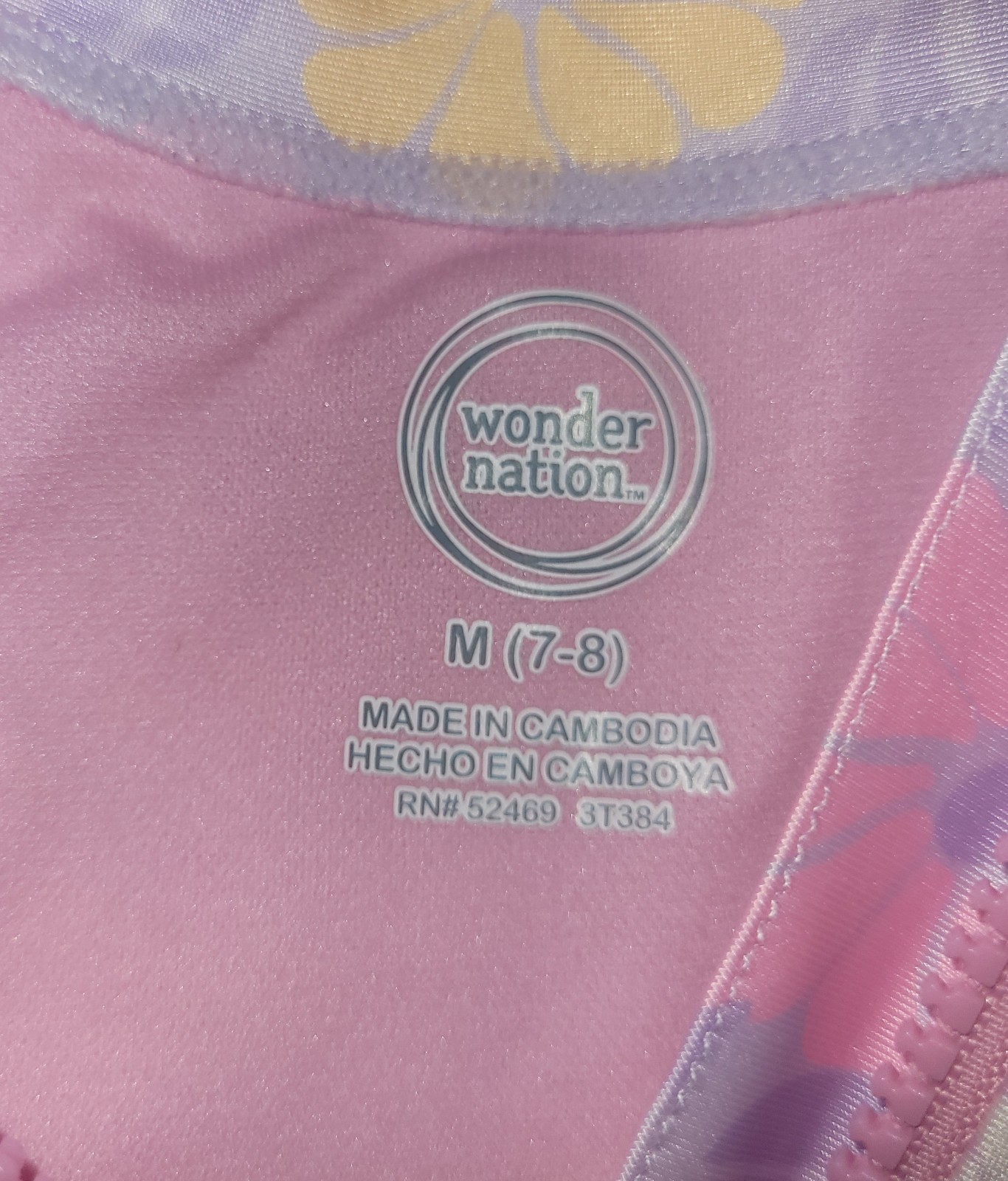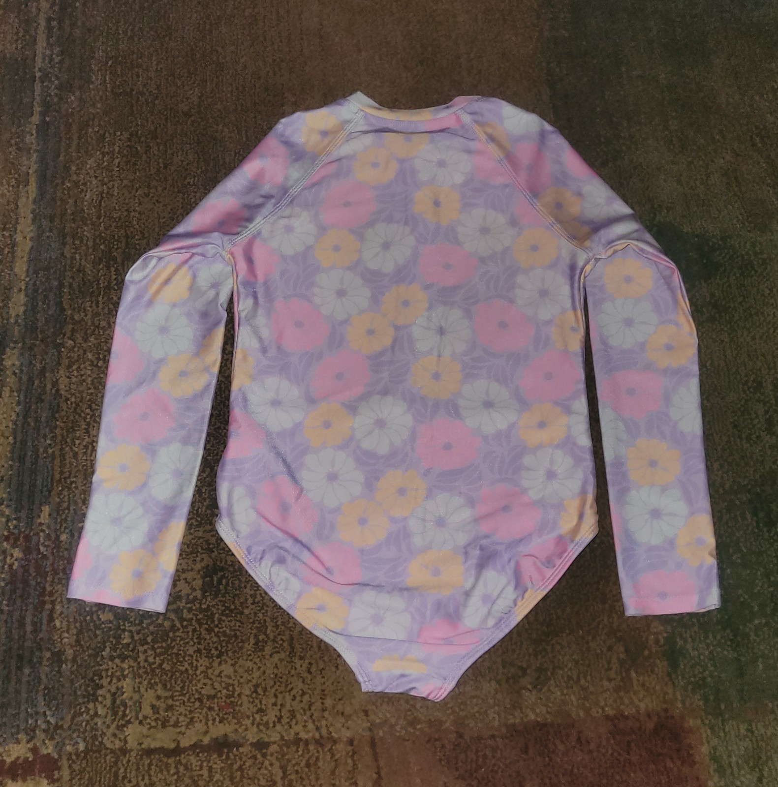 Wonder Nation Girls Floral Print Longsleeve Rash Guard 1 Piece Swimsuit Size M
