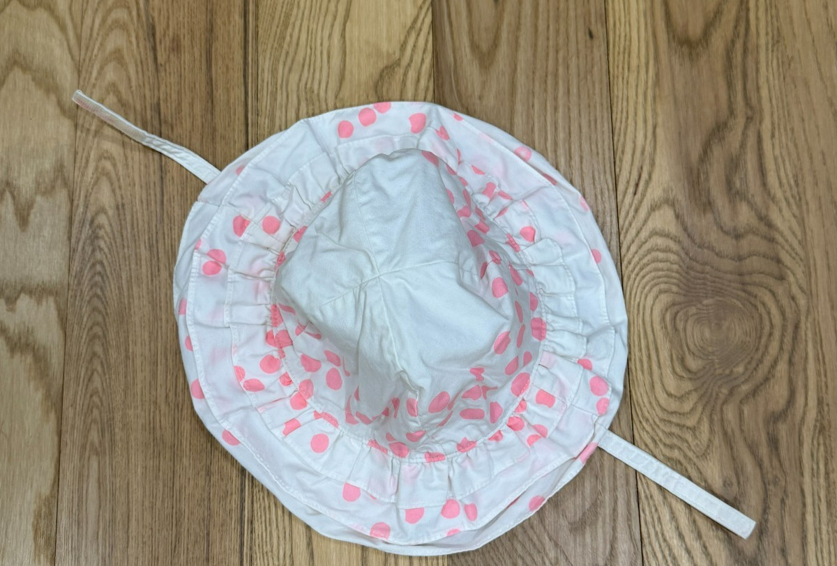 как выглядит GYMBOREE: White Bucket Hat w/ straps Pink Dotted Patterned, ONE SIZE, no tag фото