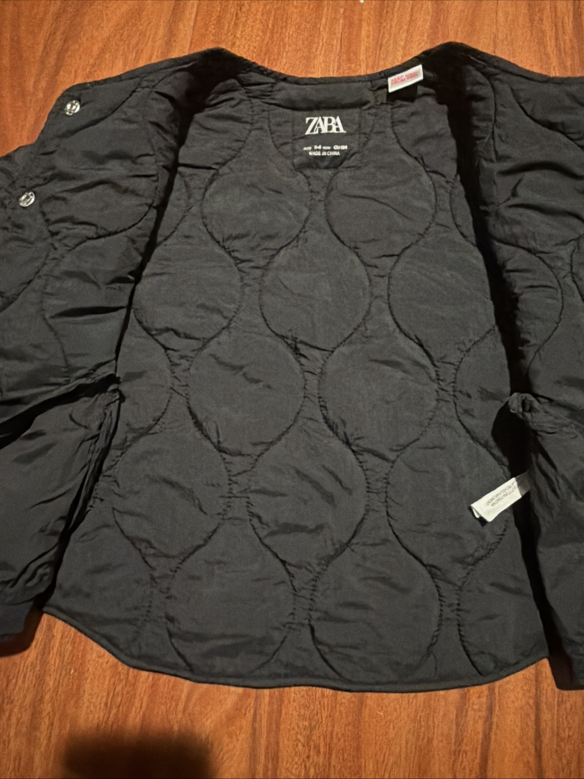 как выглядит ZARA Kids Quilted Jacket Black Size 3 4 Years CM 104 Snap Button Lightweight фото