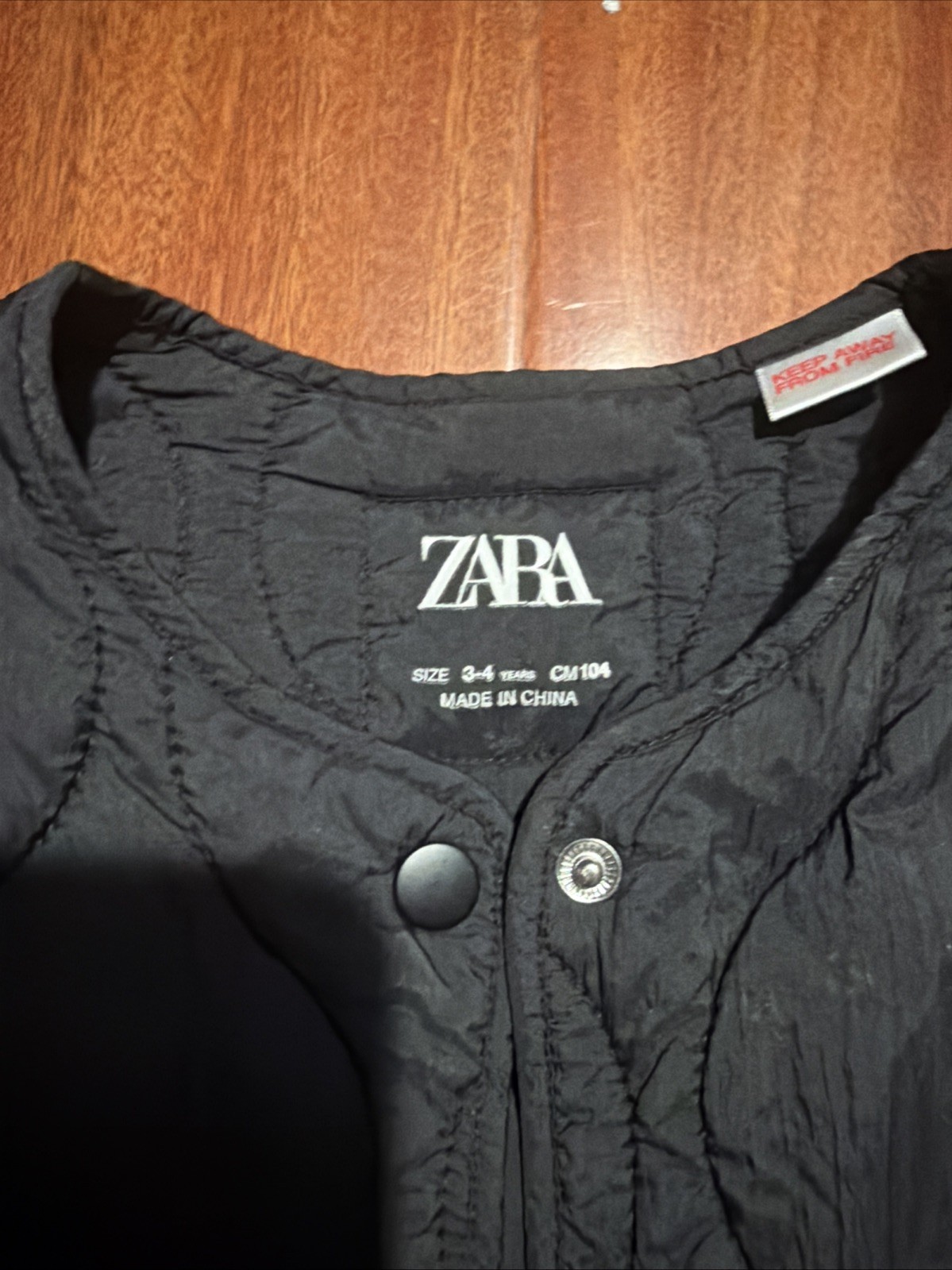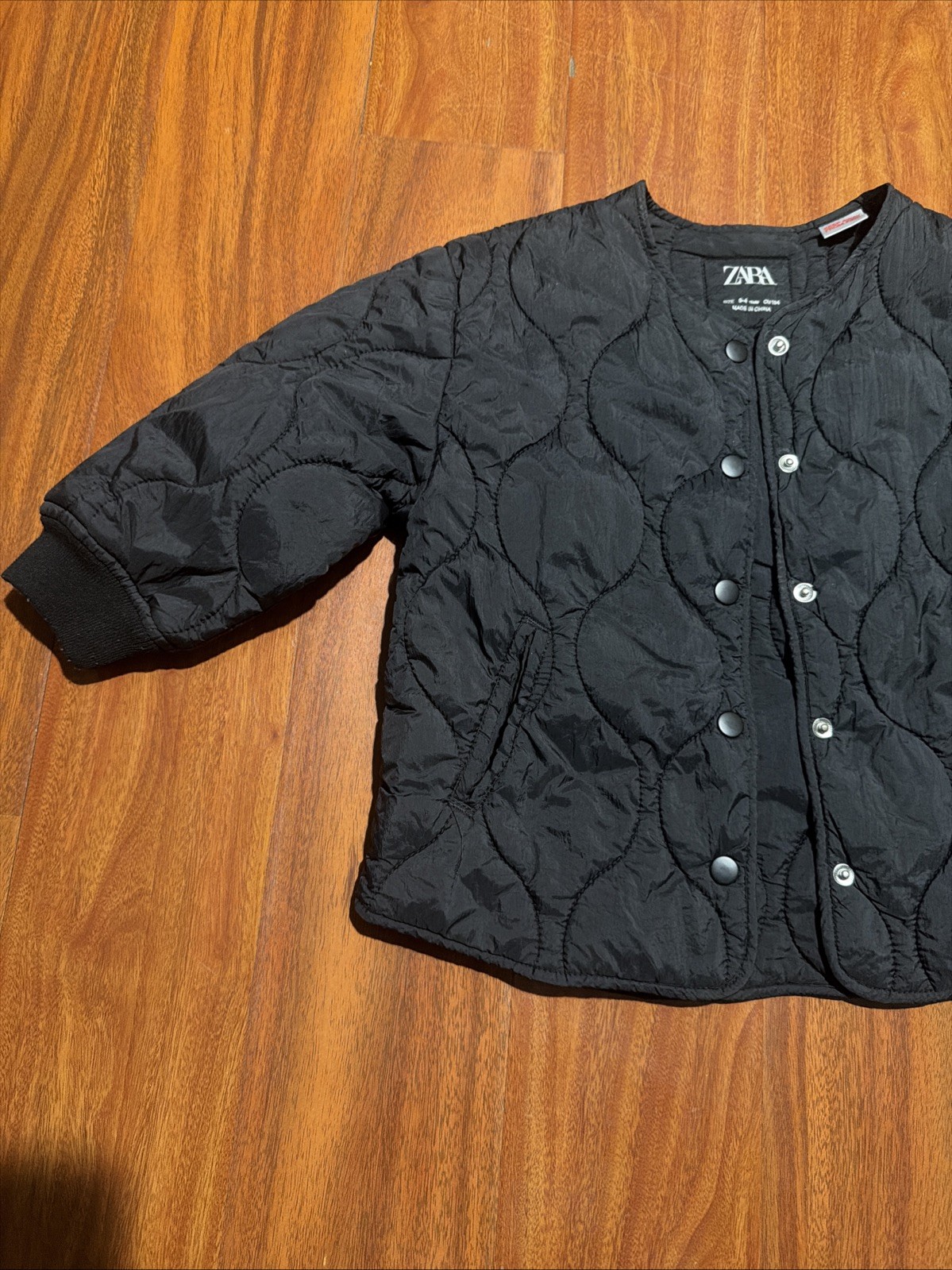 ZARA Kids Quilted Jacket Black Size 3 4 Years CM 104 Snap Button Lightweight
